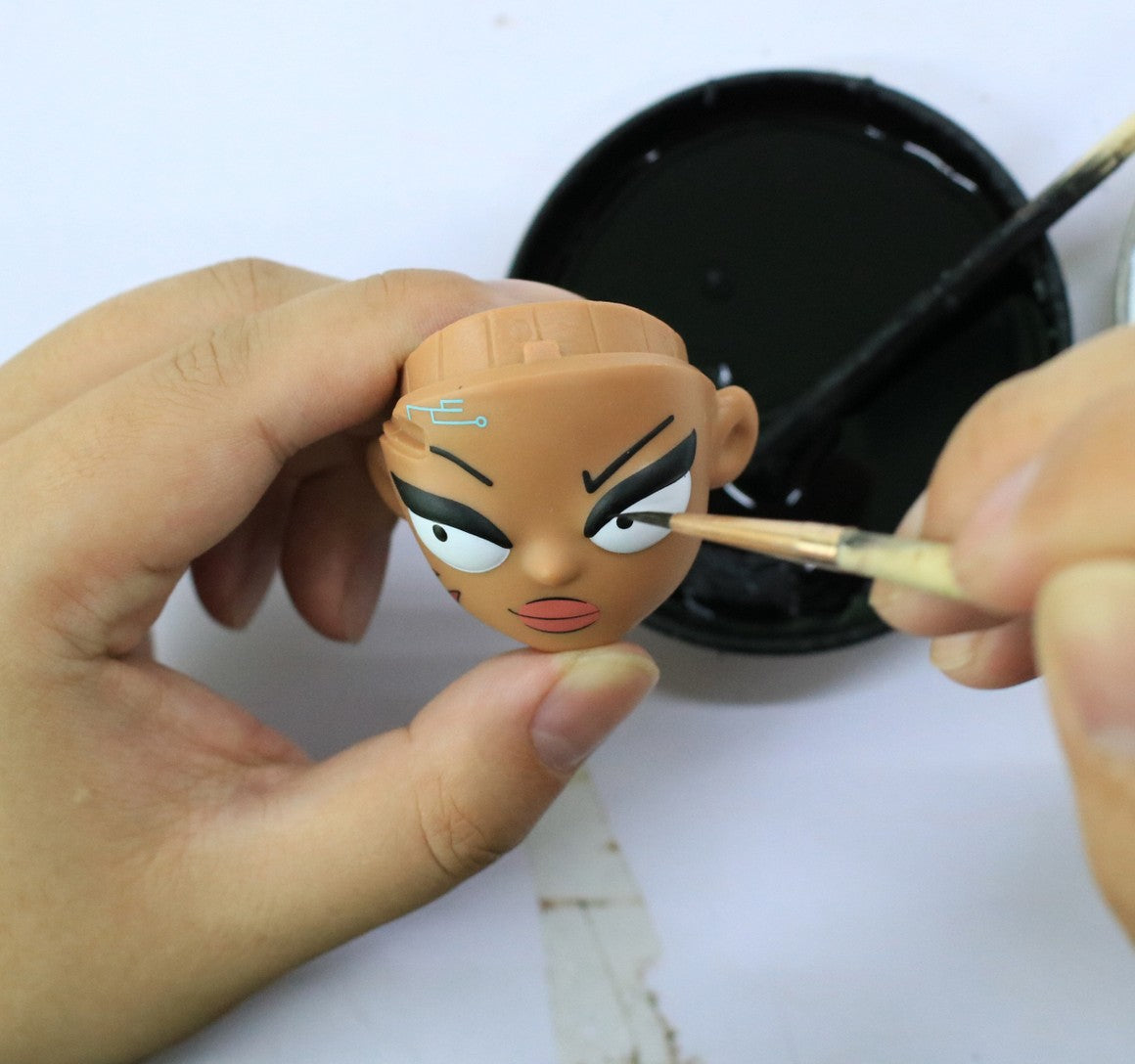 After all the parts are created, the production team then assembles each Youtooz figure by hand while meticulously painting details like eyes, clothes, and other accessories.