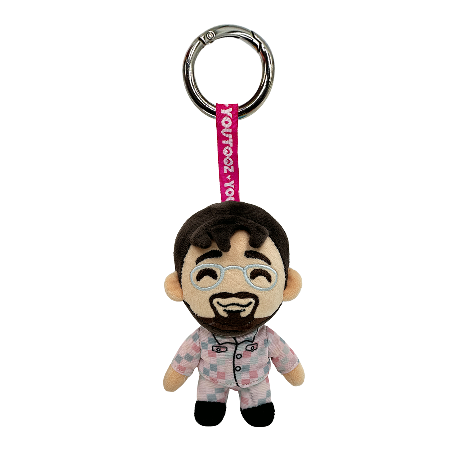 We all need a little BBNO$ in our lives, and this time we literally mean little! Standing at 5 inches tall with a huge smile curling across his bearded face underneath silver glasses as dark brown hair flicks to the front in a thick fringe, he wears a stylish, matching checkered pale pink and blue fit along with black kicks. This keychain is packed to the seams with 100% PP cotton and is made of minky and tricot materials with a keyring attached to the top by a pink Youtooz tag, absolutely perfect to hang from your backpack, purse, pants or wherever you want to show off your love for BB!