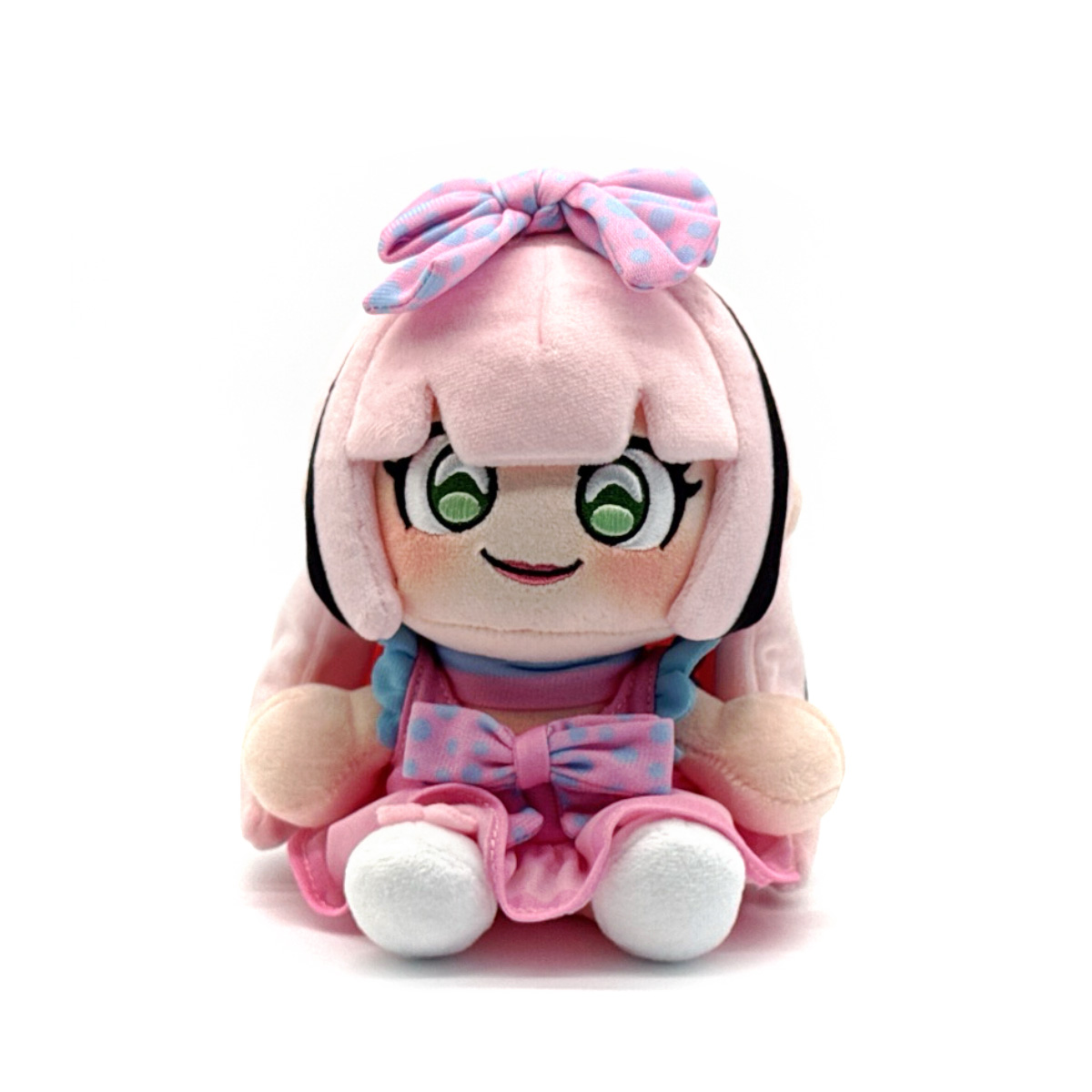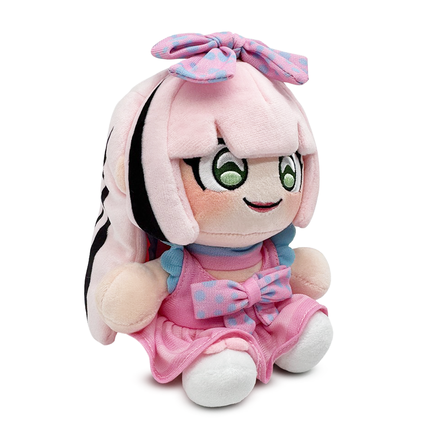 BERRY CHAN!!! Making her debut as a Youtooz plush, Berry is here for her most sickening performance yet! Sitting at 6 inches tall as she's dressed in white shoes and a pink striped dress with blue ruffles over her shoulders, a pink and blue polka-dot bow is tied on her front and matches a bow atop her long pink hair that has black highlights. With a pair of huge green eyes resting above blushing cheeks and a pink lipped smile, her face is framed by straight-cut pink bangs. This plush is packed to the seams with 100% PP cotton and is made of minky and tricot materials, perfect for cuddling or being an icon with!