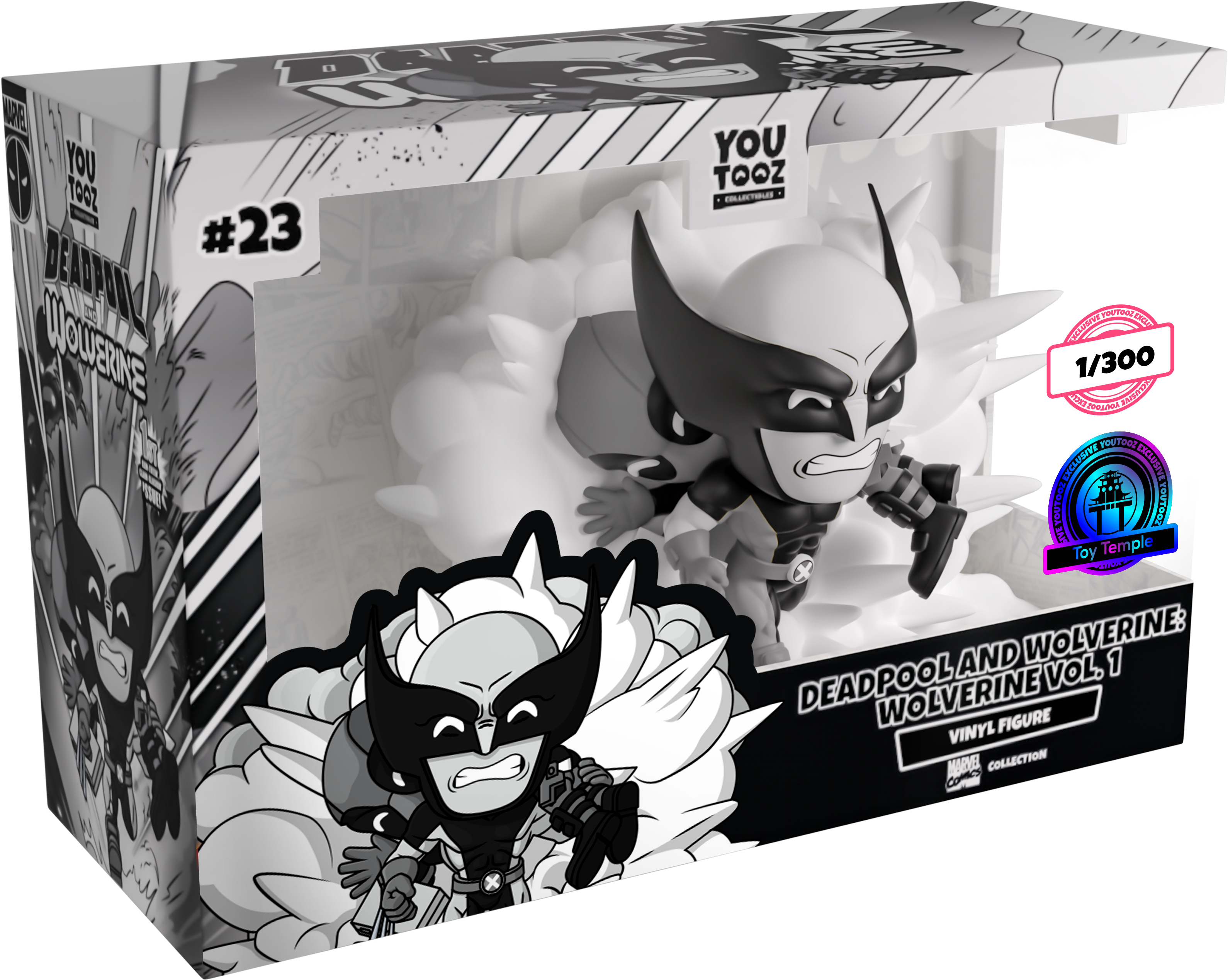 Now THIS is an explosive entrance! I mean, could we expect anything less from Wolverine and Deadpool? Honestly, why are we even asking, of course, we couldn’t! Erupting into Youtooz at 5.2 inches tall as they run from a bright explosion that sends billowing clouds and shrapnel out from behind them. Wolverine is in full stride with claws extended as he rushes forward with gritted teeth with frowning eyebrows seen through a pointed black and yellow mask with Deadpool slung over his shoulder. While the perfect damsel in distress, Deadpool doesn’t even worry about holding on, knowing he’ll make it out fine. His bright white eyes are carefree as he tightly clasps a silver briefcase. The exterior of their packaging sees Deadpool and Wolverine mid-fight and floating in front of a distant earth, while the interior is covered in the light grey panels of Marvel comics. The protective sleeve is then covered in an explosion with light streaking across its front as their figures can be seen through the large clear window at the packaging’s front. This collectible ships in a matte, embossed, protective outer sleeve and a custom-sized plastic protector for maximum protection during shipping.
