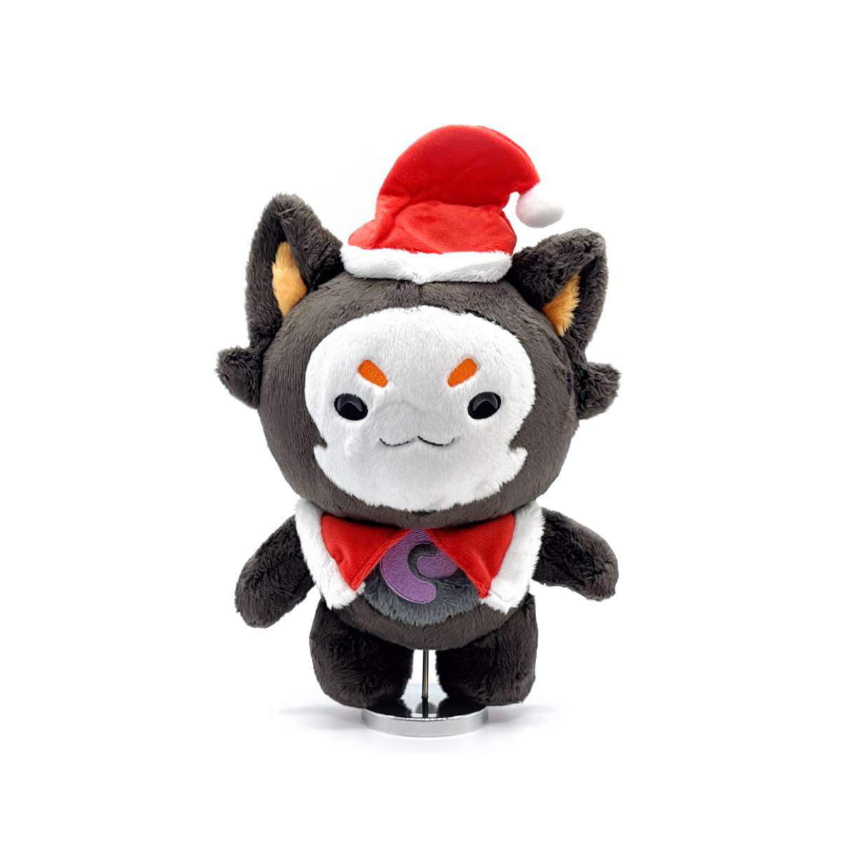 Demenishiki loves the holidays so much that we had to bring her iconic mascot Boomi to life as a festive Youtooz plush! Standing at 9 inches tall, Boomi's dark grey body is accented with orange in his ears, paws and striped through his tail as a purple design swirls over his tummy. With dark fur framing his mischievous white face, Boomi's ready for the holidays with a red poncho that has a fluffy whit trim and a matching Santa hat. This plush is packed to the seams with 100% PP cotton and is made of normal and long pile minky materials, perfect for cuddling or spreading holiday cheer with!