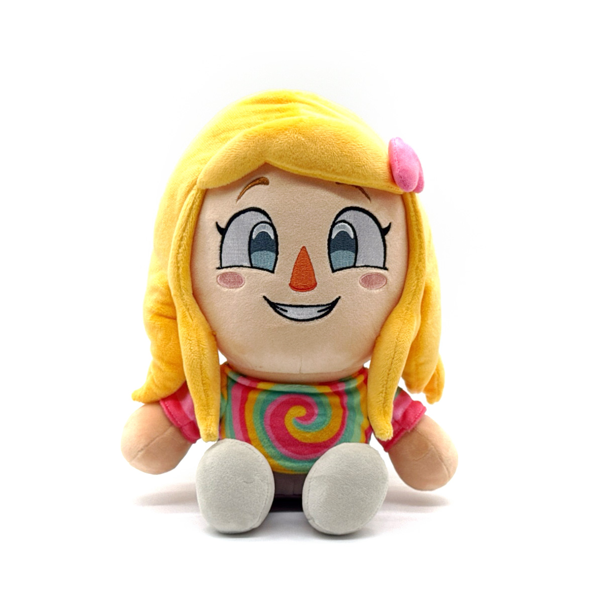 Are you a boy? Do you want to meet a girl? Well, we have just the girl worth meeting! Making her Youtooz plush debut, Taryn is here as a fabulous 9-inch plush. She is seated and dressed, wearing white sneakers and pink pants. While her shirt has a psychedelic swirling rainbow print! Her honey blond hair cascades around her smiling face, with a perfectly pink heart hair clip holding her bangs in place. This plush is packed to the seams with 100% PP cotton and is made of the softest minky material, perfect for cuddling or gaming with!
