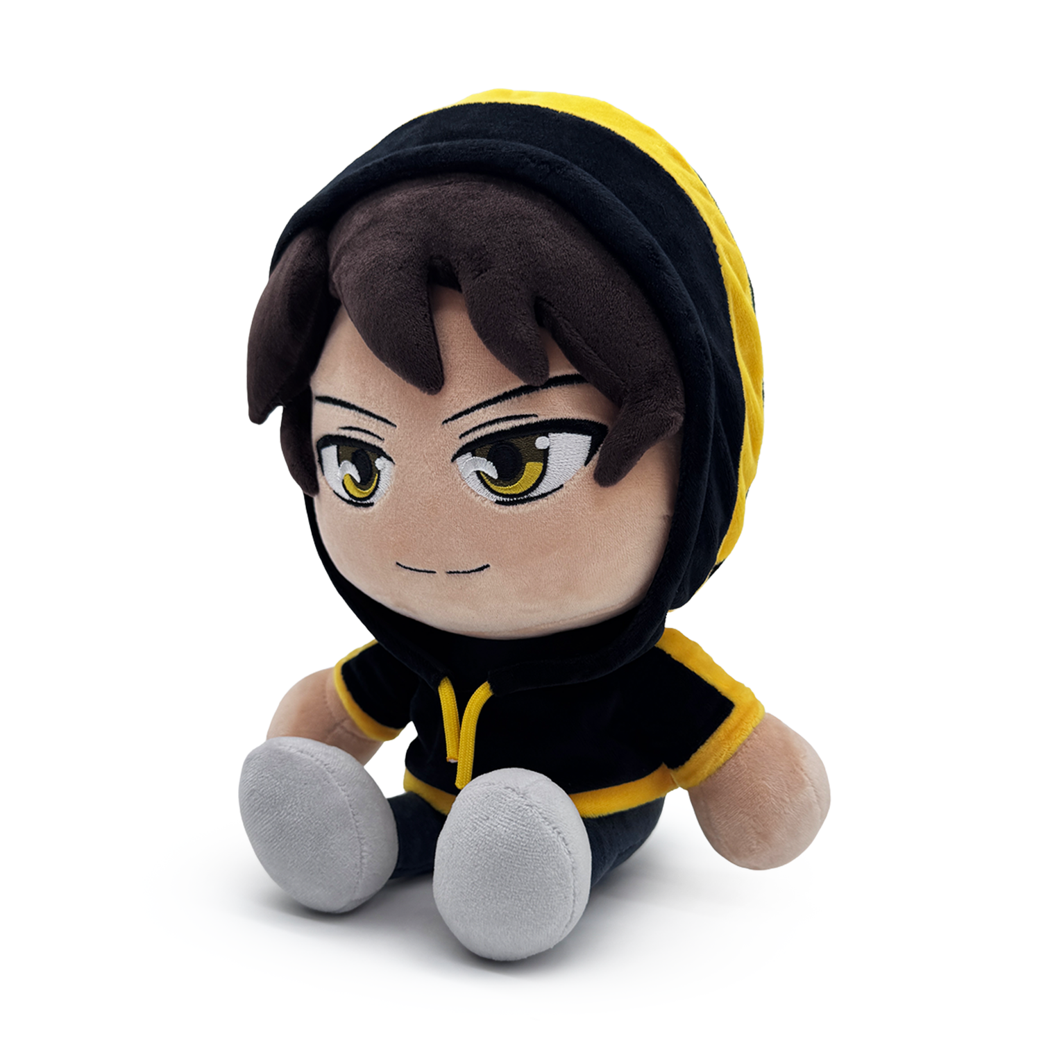 ButterJaffa just slapped some butter on us! It must be time for his Youtooz debut! Sitting at 9 inches tall and dressed in grey sneakers, charcoal pants and a black hoodie with yellow detailing that has the hood pulled over his head, shaggy brown hair sweeps across his forehead and falls down either side of his face to frame striking yellow eyes and a thin smile! This plush is packed to the seams with 100% PP cotton and is made of the softest minky material, perfect for cuddling or gaming with!