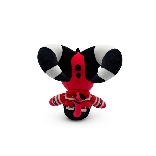 Blitzo’s back and he’s bringing the spirit! What spirit? The killing spir… Christmas! The Christmas spirit! Sitting at 9 inches tall with a sincere smile stretching across his red and white face to sit underneath huge yellow eyes and a raised eyebrow, the black heart skull mark on his forehead rests between two long black and white striped horns that curve backwards. Dressed to enjoy a warm cup of nog in front of the fire, he wears a red and white Christmas sweater with an inverted cross on the front, along with dark pants and red-tipped shoes as his spined tail whips around from the back. This plush is packed to the seams with 100% PP cotton and is made of the softest minky material with accents of felt, absolutely perfect for cuddling or opening presents with!