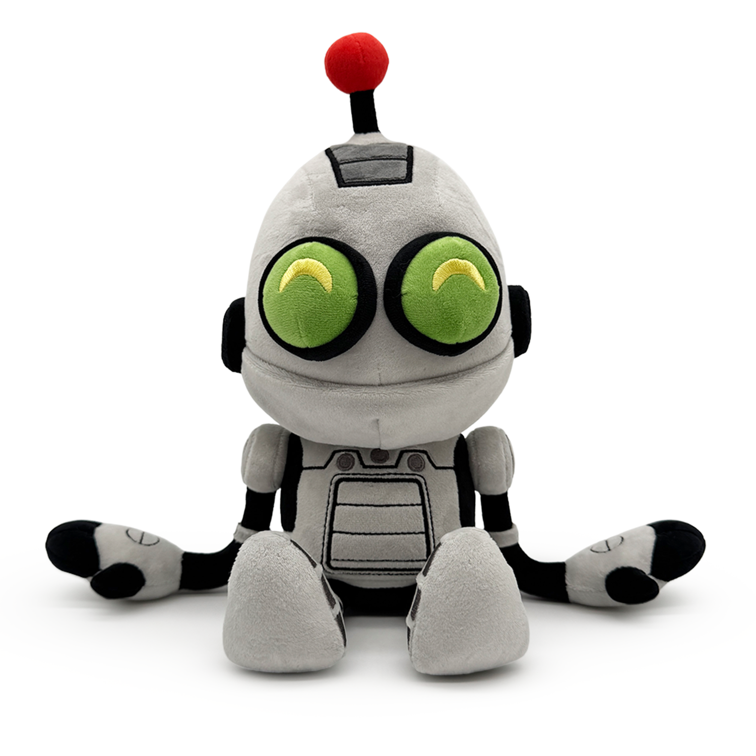 Everybody knows they would get more done with Clank, so naturally we had to bring Clank to life as a Youtooz plush! Sitting at 9 inches tall with legs kicked forward and arms relaxing to his sides, his grey robotic body is connected by thin black limbs to make his intricately designed robot body pop as a smile crosses his face under large, round, green eyes and a red-tipped antenna reaches up from his head. This plush is packed to the seams with 100% PP cotton and is made of the softest minky material, perfect for cuddling or hanging out with!