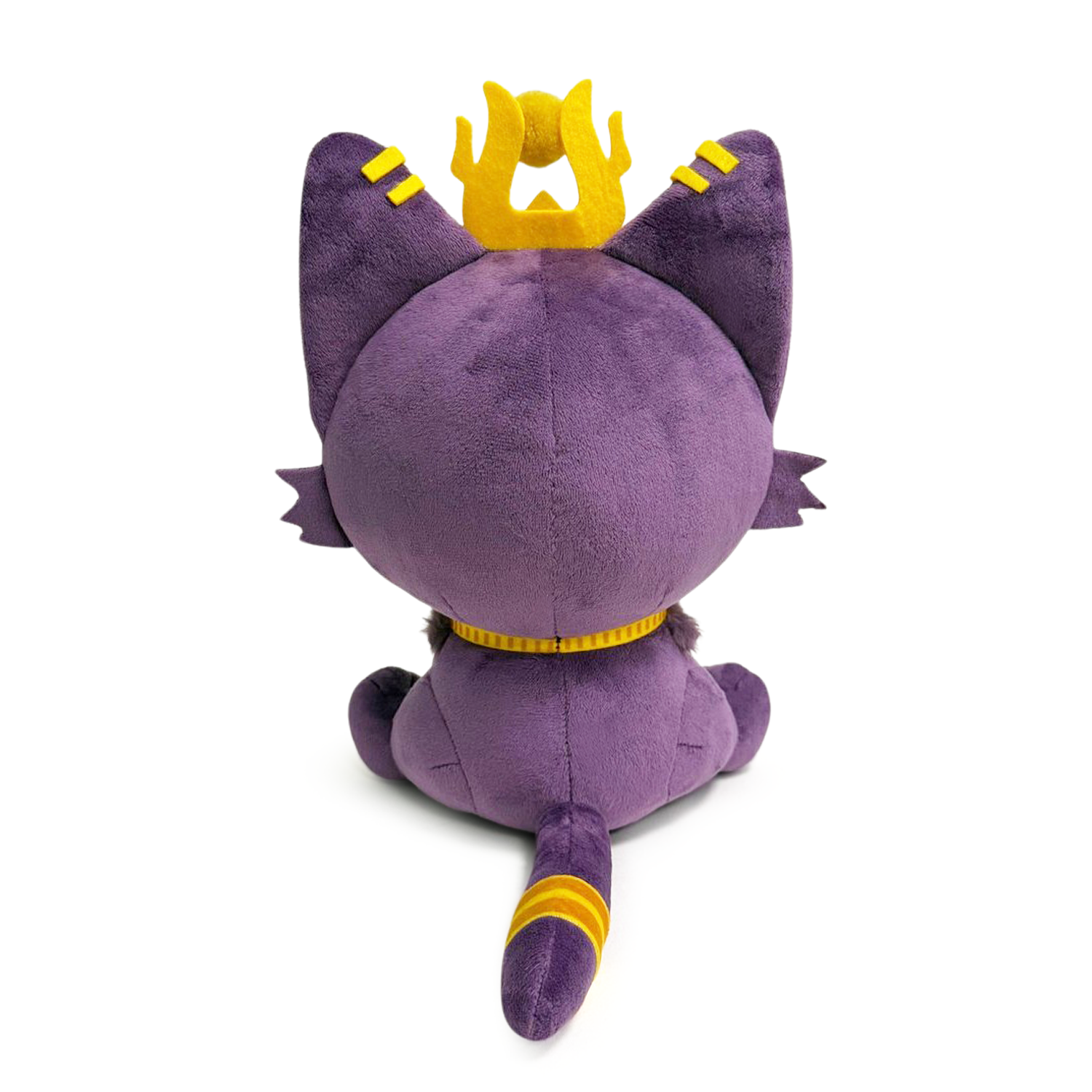What kind of snack-rifices would we be if we didn’t welcome Cleo into Youtooz for her very own plush! Sitting at 9 inches tall with wicked golden eyes staring out from her purple face, a dazzling sun marking covers her forehead as a pair of pointed ears rest to either side of an ornate crown that has a green gem at the center. Truly embodying her role as a cat goddess, she wears an elegant necklace with matching arm and tail bands as her back paws kick forward to show pink heart-shaped pads. This plush is packed to the seams with 100% PP cotton and is made of normal and long pile minky materials with accents of felt, absolutely perfect for cuddling or destroying things with! Wait… No, don't do that!!