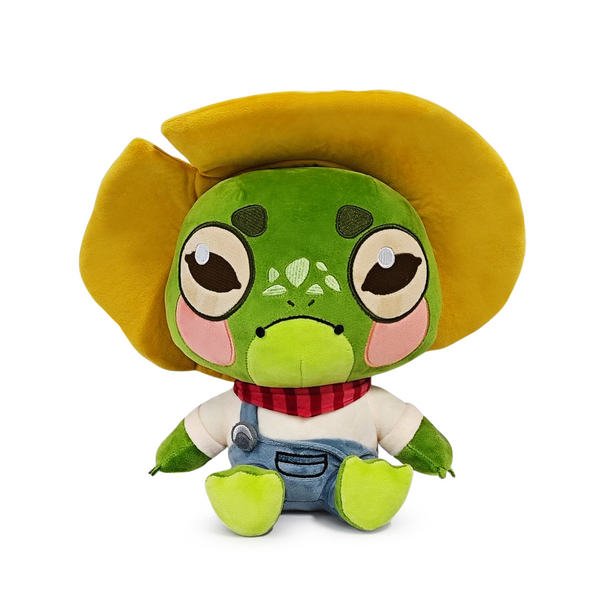Load up your caravan and get wheeling! Bubba took a pit stop during his adventure so we could make him into a Youtooz plush! Sitting at 9 inches tall with his pointed feet kicked forward, our new froggy friend is dressed in blue overalls, a beige shirt and a red striped bandana around his neck, while atop his green head is a wide-brimmed straw hat. With huge yellow eyes that have wide amphibian pupils, a small frown crosses his face between rosy pink cheeks as light marks cover his nose and arms. This plush is packed to the seams with 100% PP cotton and is made of the softest minky material with accents of felt, perfect for cuddling or marching a caravan around with!