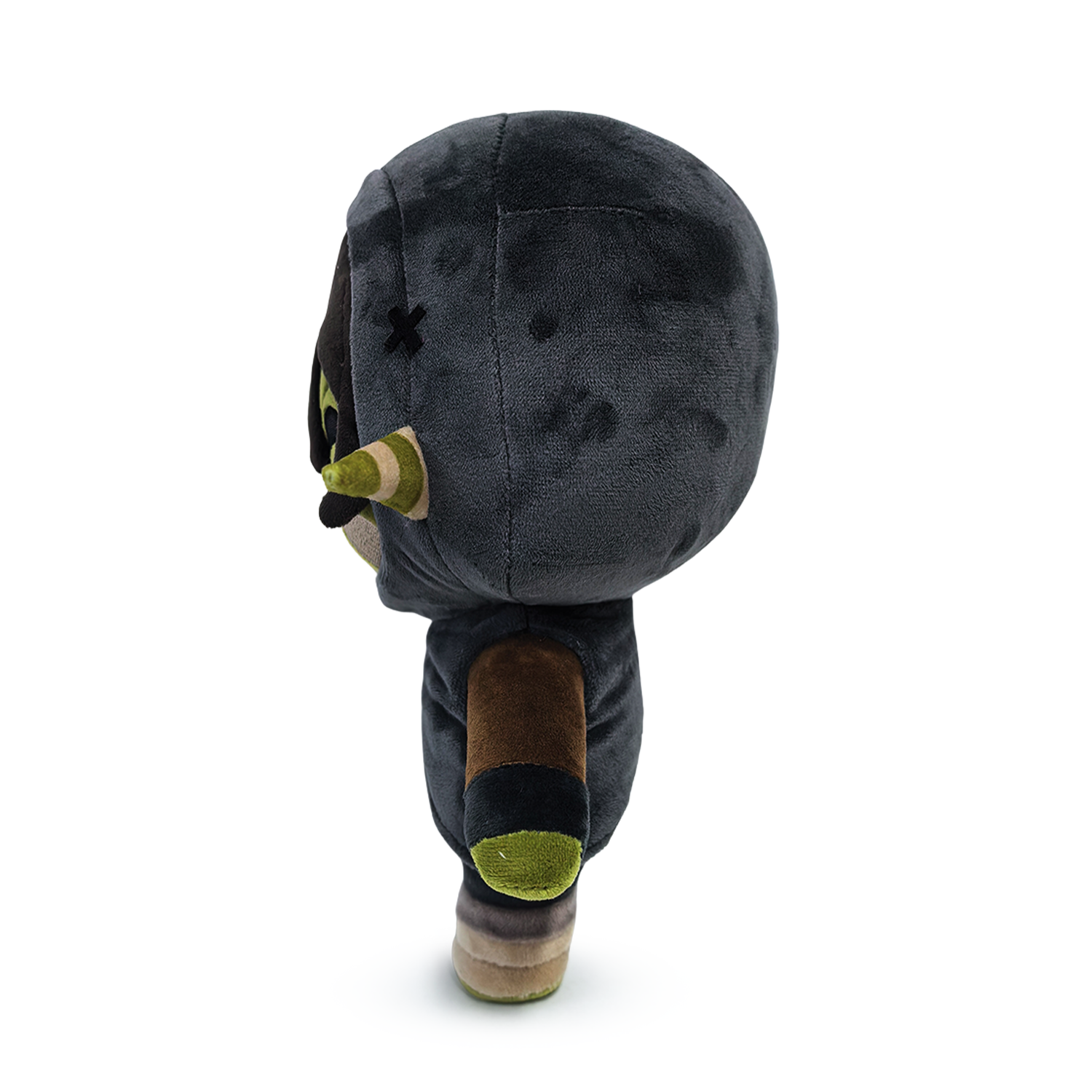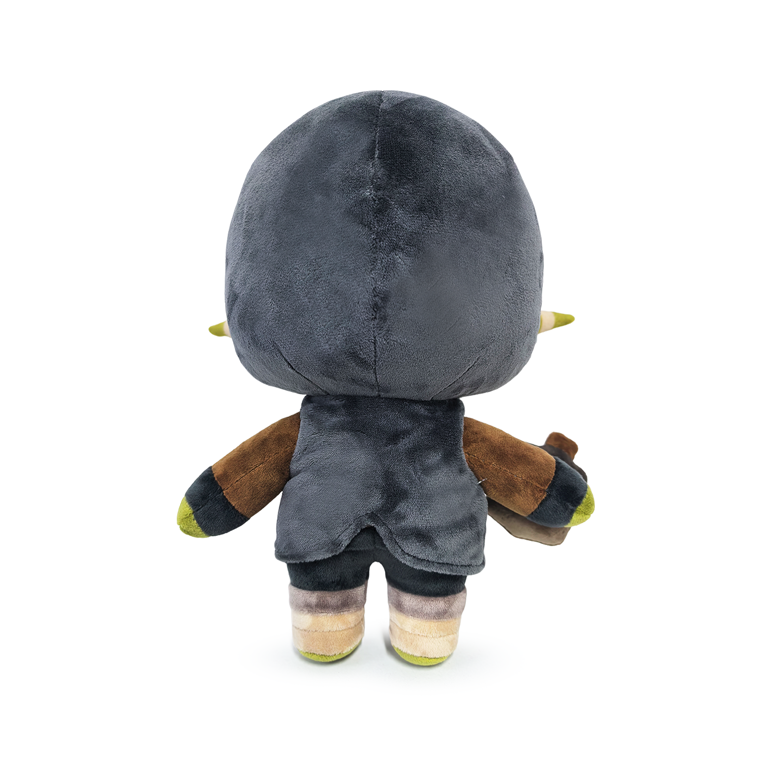 Fresh off a brand new adventure and landing directly at Youtooz, the Mighty Nein are here for a brand new plushies! Sneaking her way into the fray, Nott stands at 9 inches tall with bandages wrapping around her feet and ears and wears grey pants, a brown long sleeve shirt and a grey hooded cloak. With her orc ears popping out the sides of her hood which is pulled up to frame her smiling green face, she holds up a flask in her right hand ready to drink at a moment's notice! This plush is packed to the seams with 100% PP cotton and is made of the softest minky material with accents of felt, perfect for cuddling or rolling nat 20's with!