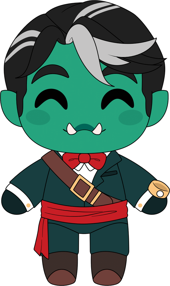 Can you hear the bells? It is a magical day here at Youtooz as we have a wedding to attend! Fjord is here and he is ready to say "I do!" Standing at 9 inches tall and dressed in a green suit and white shirt as his red bowtie matches the ribbon hanging from his waist, a brown strap with a yellow buckles crossed his chest as he hold a golden ring in his left hand. With short black and grey hair sweeping to the side stylishly, a pair of pointed teeth poke out from his smiling mouth as orc ears extend out either side of his green head. This plush is packed to the seams with 100% PP cotton and is made of the softest minky material with accents made of felt, perfect for cuddling or walking down the aisle towards!