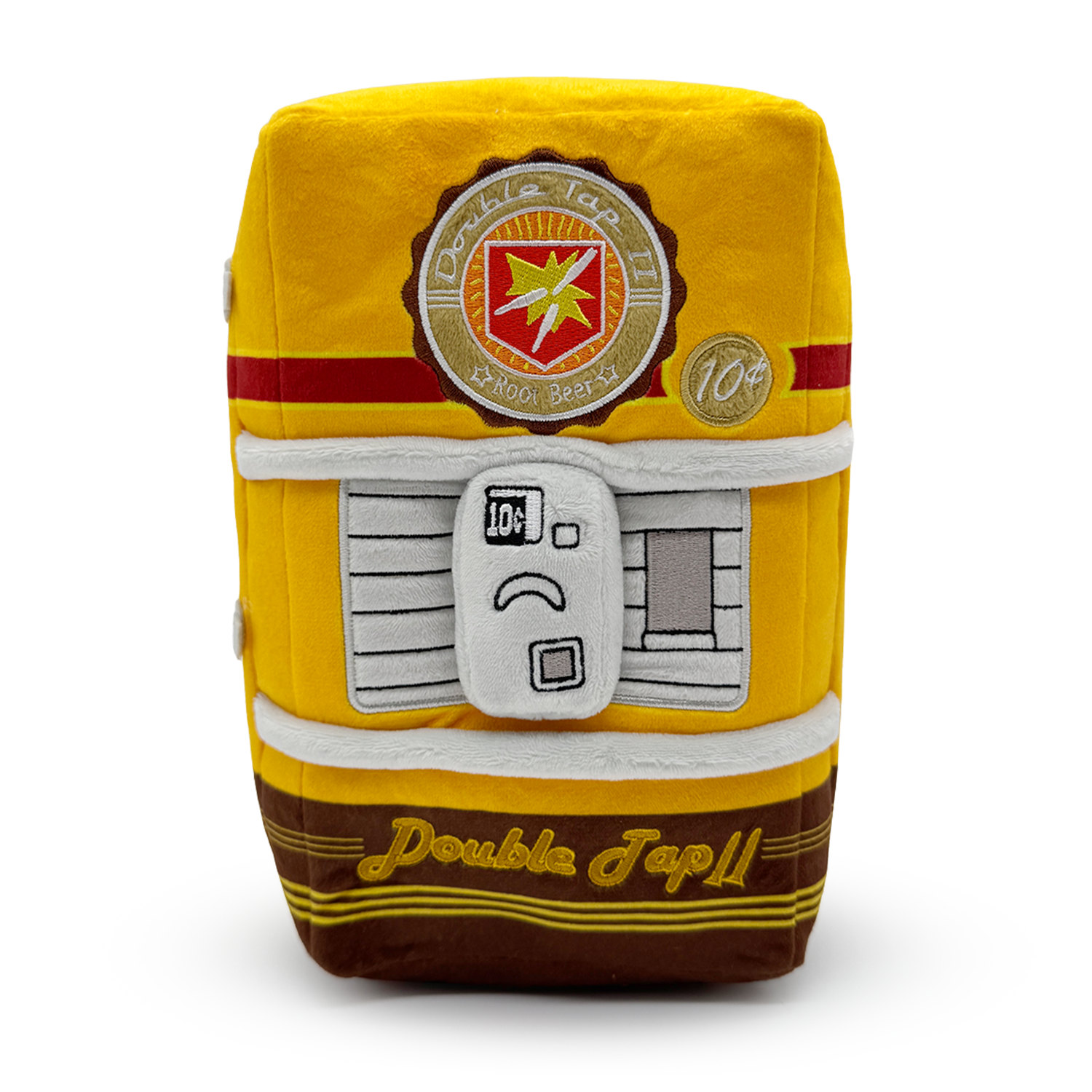 Howdy cowboy! Need to speed up that trigger finger? Well, ain’t we just got the damndest thing for ya! Standing at 9 inches tall with a long rectangular yellow body that has the ‘Double Tap’ logo at the top and a brown bottom with a series of lines running through it, a thick grey dispenser that shows the price covers its front, just begging you to grab a drink! This plush is packed to the seams with 100% PP cotton and is made of the softest minky material, absolutely perfect for cuddling or running out of ammo with!