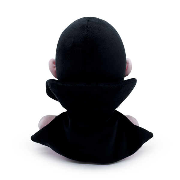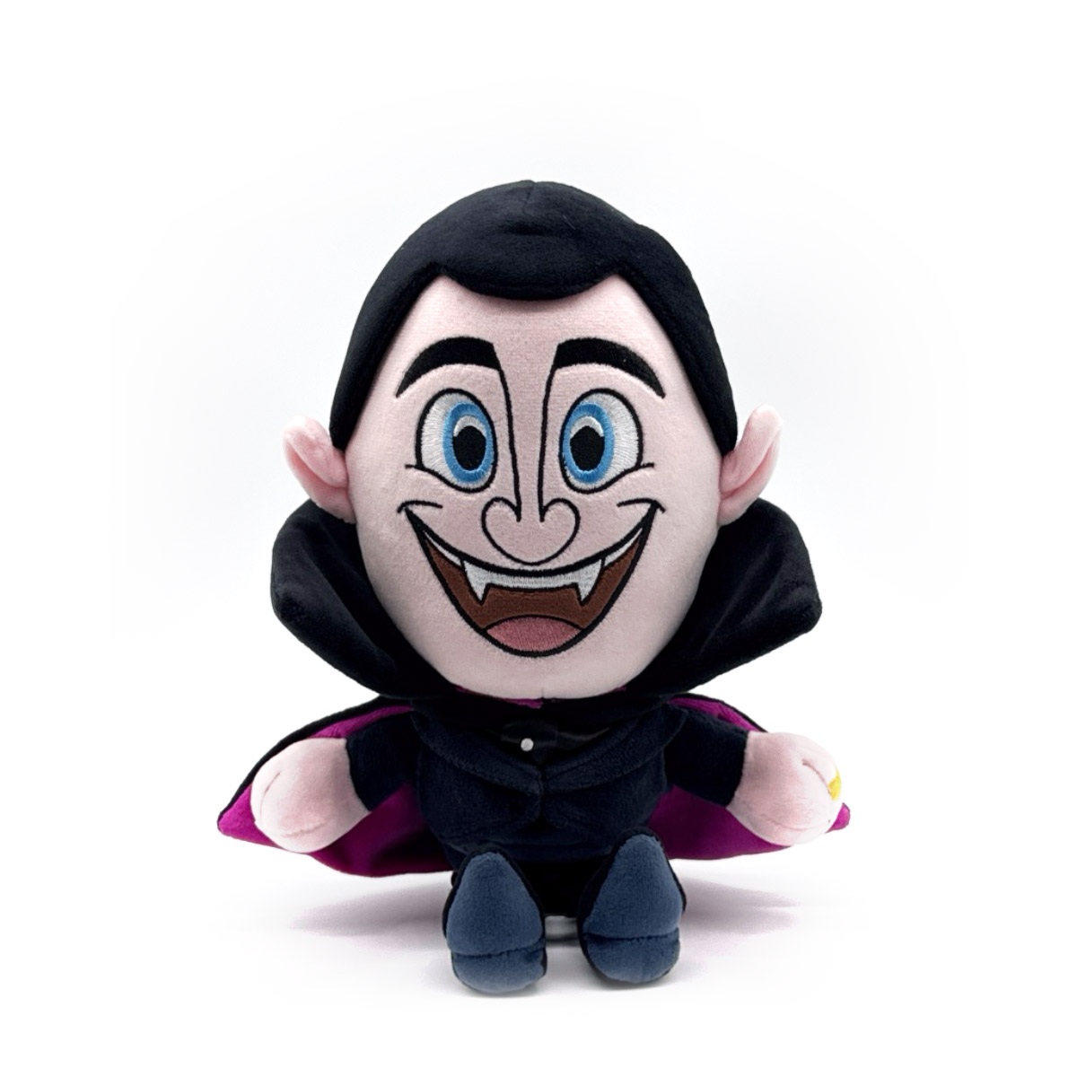 Dracula is expanding his Hotel and has his eyes (and fangs) set on Youtooz for the next destination! Sitting at 9 inches tall with a huge mouth opening into a smile that has a pair of sharp fangs hanging from the top, a pair of bright blue eyes rest on either side of a long nose, as short black hair covers his head above pointed ears. Always stylish because black is never out of season, he wears a matching tuxedo and pants along with pointed shoes as his high collared cape has a fuchsia lining. This plush is packed to the seams with 100% PP cotton and is made of the softest minky material, absolutely perfect for cuddling or opening your very own hotel with!