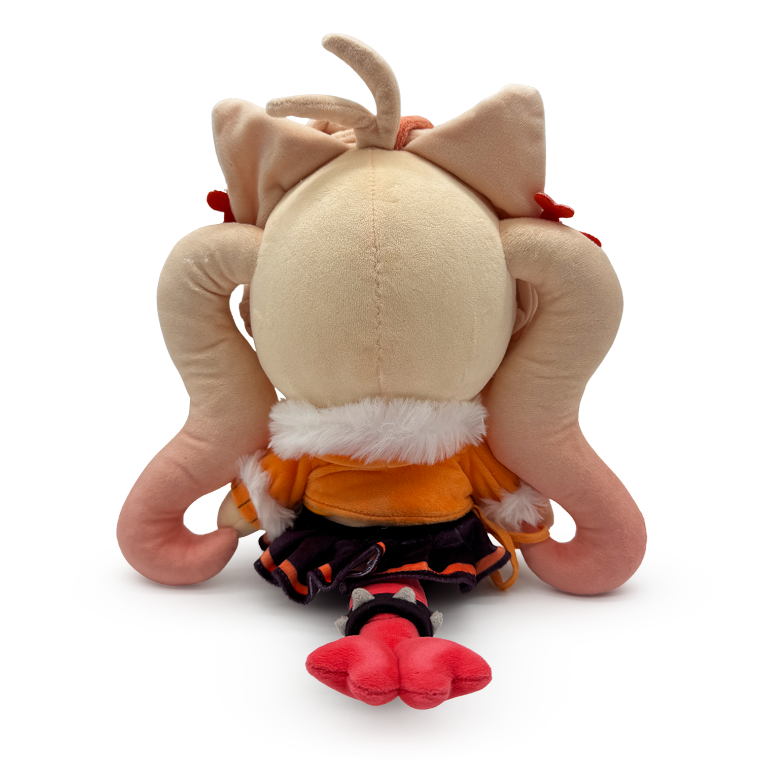 Hello prawnstars! Ebiko has left the sea and has found herself here at Youtooz for her plush debut! Sitting at 9 inches tall with her legs kicked forward, she's dressed in black and orange shoes, fishnets, a black pleated skirt with orange detailing, a white and orange croptop and an orange jacket that's shrugged off her shoulders. With her lips pursed into a pout under blushing cheeks and serious eyes, long blonde hair frames her face in two long pigtails that turn to a soft pink at the ends as a very shrimpy tail pokes out from her back. This plush is packed to the seams with 100% PP cotton and is made of normal and sublimated minky with accents of felt and long pile materials, perfect for cuddling or gaming with!