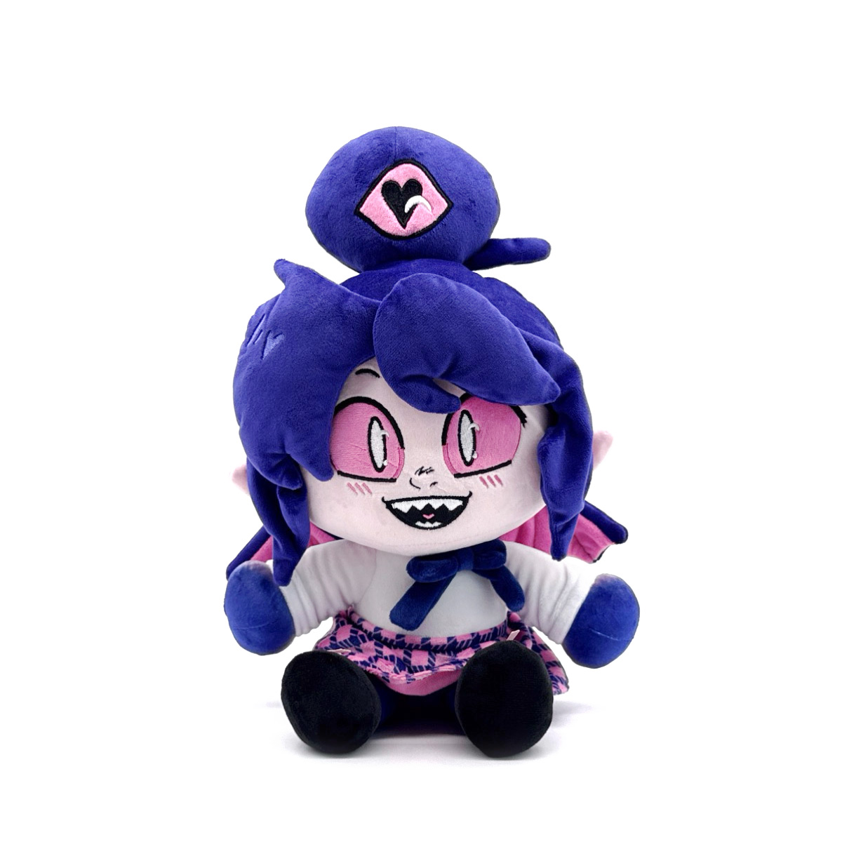 Ina has portaled through the webcomic and into Youtooz to become a brand new demonic plush! Sitting at 9 inches tall and dressed in black shoes, dark purple tights, a pink skirt with a purple plaid print and a white blouse, a purple ribbon hangs from her neck as sharp wings extend from each shoulder. With purple hair falling around her face to frame pink eyes and a sharp-toothed smile, atop her head is a large eye with a black heart-shaped pupil in the center, while on the back of her head Ina's second mouth forms another sharp-toothed smile. This plush is packed to the seams with 100% PP cotton and is made of minky and tricot materials, perfect for cuddling or exploring eldritch dimensions with!