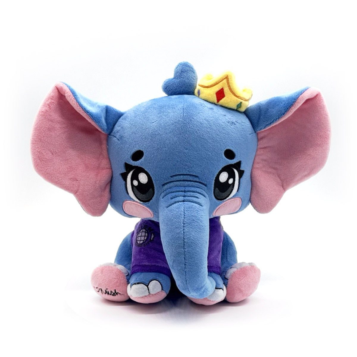 Mish has survived until daylight in style and is here to bring her favorite animal, Elly the Elephant, to life as a Yotuooz plush! Sitting on her rump at 9 inches tall with hind legs kicked forward, this blue elephant is styled to the 9's wearing a purple sweater that's embellished with a disco ball on one shoulder to match the small bow on her thin tail. With a golden crown resting slightly askew on her head between large ears that are flared out to show-off soft pink insides, glistening round eyes rest above blushing cheeks as a long trunk hangs from the front of her face. This plush is packed to the seams with 100% PP cotton and is made of normal and long pile minky materials with accents of felt, perfect for cuddling or gaming with!