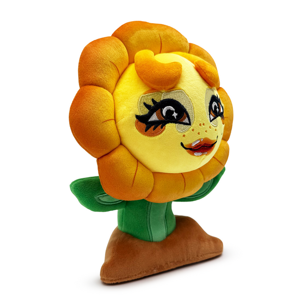 The sun is out, and her petals are spread to show a beat mug nestled in the floral disk of this sunflower. Freddie makes her Youtooz debut with her first plush! This plush is 9 inches tall and is designed with a base of plush dirt from which the stalk of this green flower protrudes that leads up to a yellow floral disk and orange petals framing it. This plush is packed to the seams with 100% PP cotton and is made of the softest minky material, with accents made in felt and tricot fabric, perfect for cuddling or serving looks with!