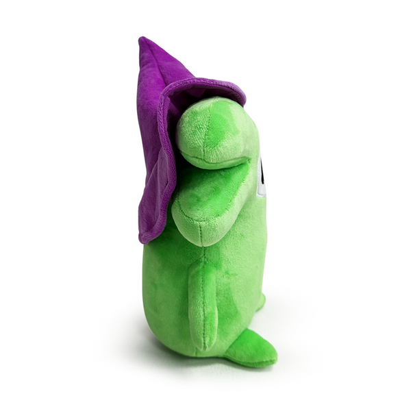 We’ve been feeling a little down lately, so we got on a call to Smiling Friends and Glep’s been assigned to put that smile back on our dial with his plush debut! Sitting at 9 inches tall with a huge round eye and a massive green mouth that opens up to the side of his head, he wears nothing but a pointed purple wizard hat as thin limbs stick out from his narrow body. This plush is packed to the seams with 100% PP cotton and is made of the softest minky material, absolutely perfect for cuddling or fixing all your trouble with!