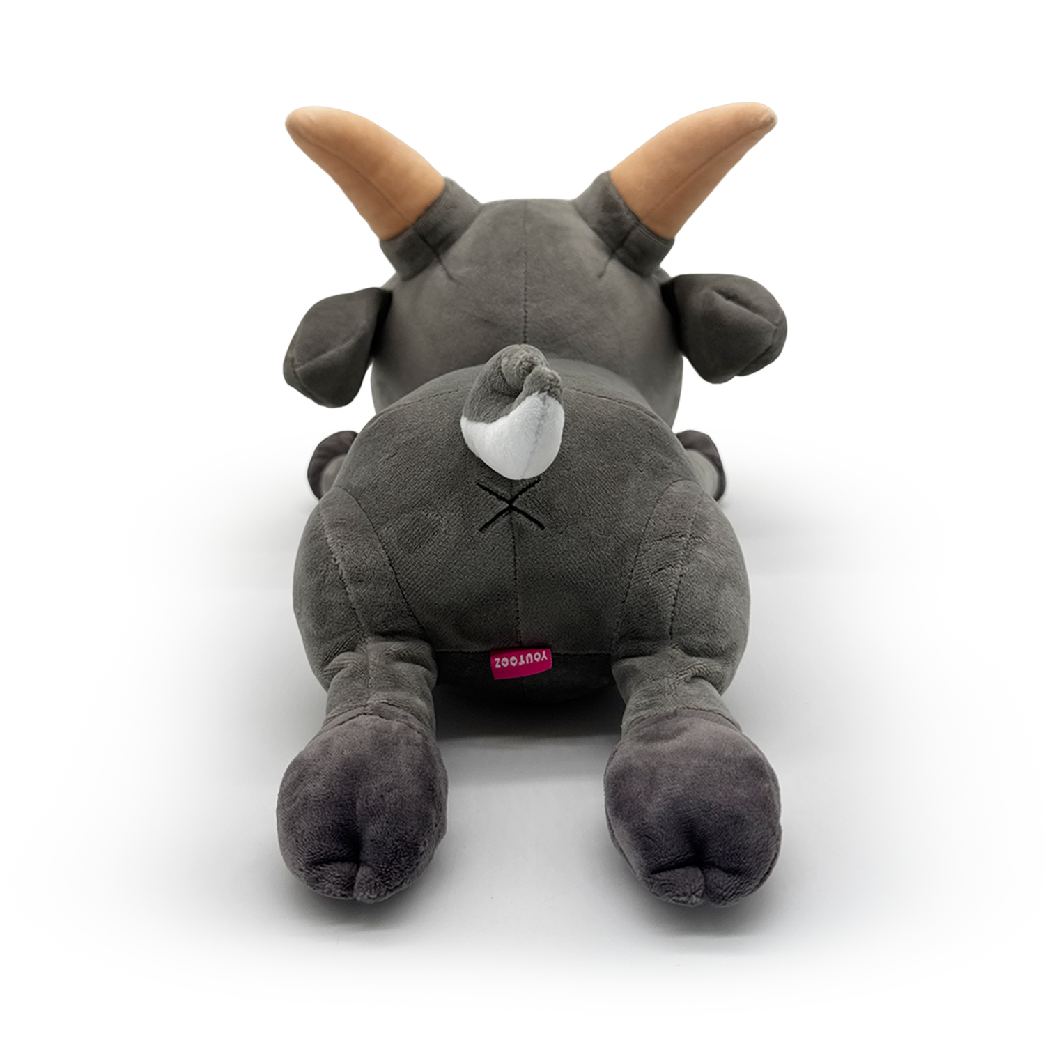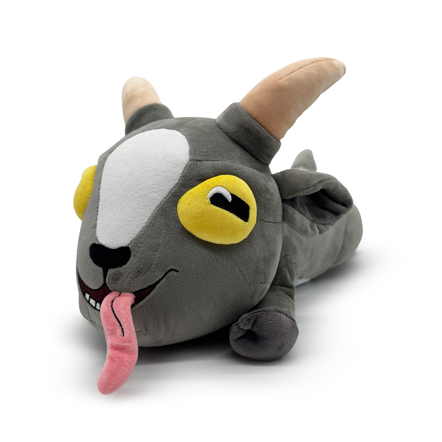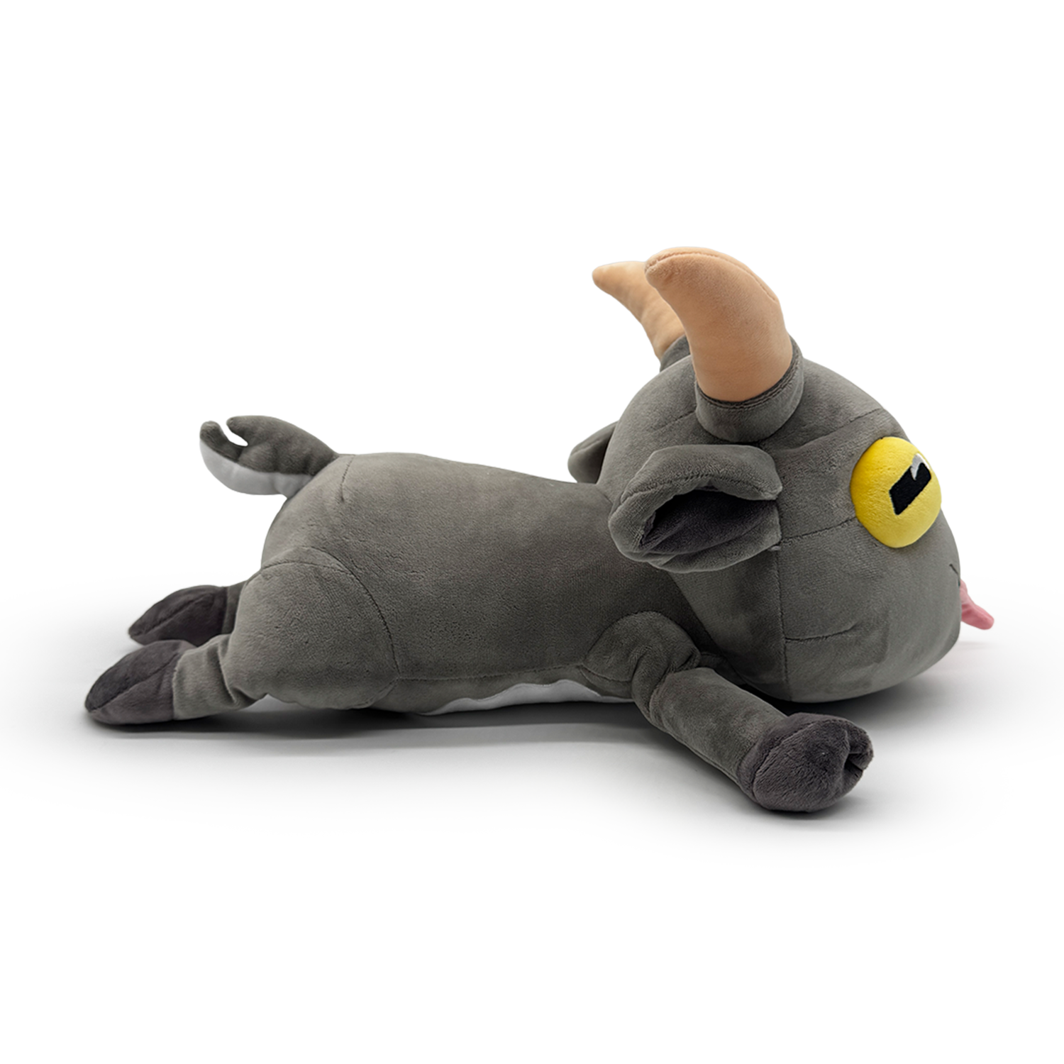Would you look at who just ragdolled into Youtooz from an explosion that they definitely, 100%, didn't cause! Laying at 16 inches long and weighing roughly 2 lbs/1kg, a long pink tongue flops out from their open smiling mouth as a pale marking runs up their face from a small black nose between two yellow eyes that have horizontal pupils. With pointed beige horns reaching out from the top of their head, hooved feet stick out under their chin and splay to the back under a short two-tone tail. This plush is packed to the seams with 100% PP cotton and is made of the softest minky material, absolutely perfect for cuddling or being shot from a canon with!