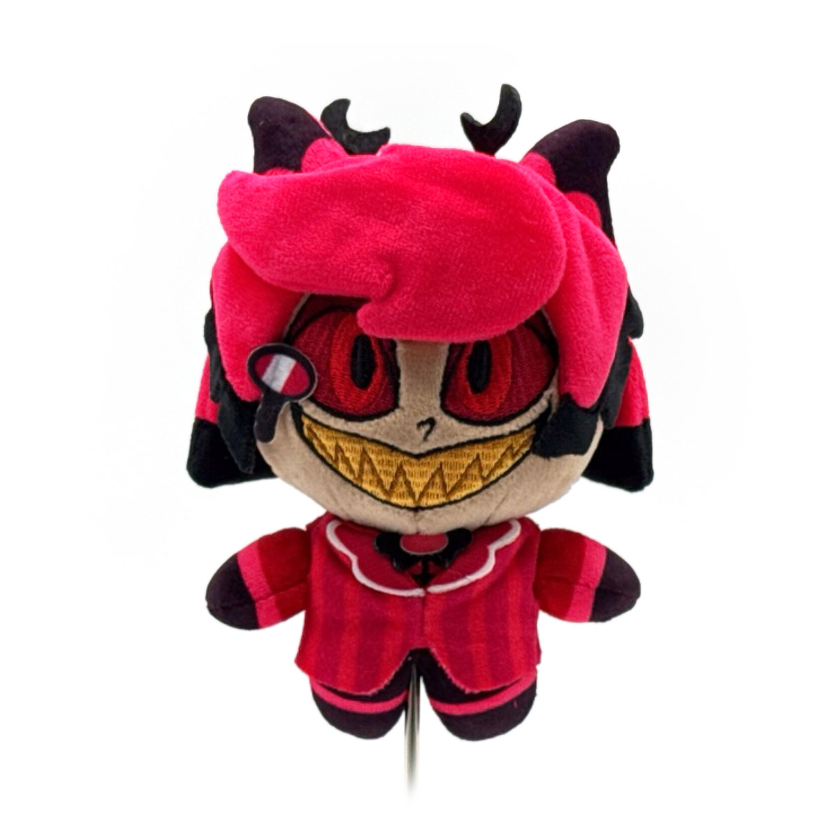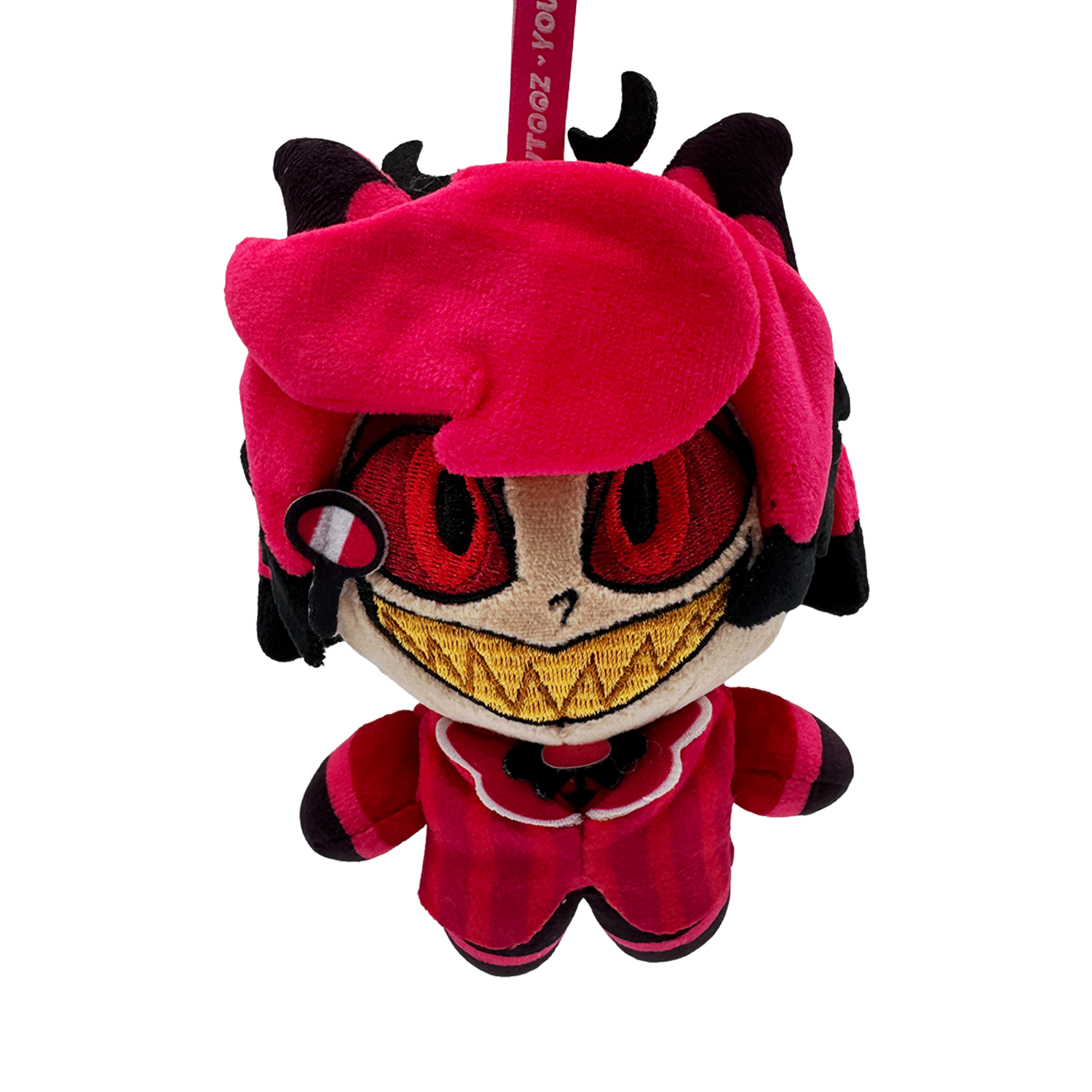 Alastor’s keeping his eye on you! And where better than to always be by your side with our brand new keychain! At 5 inches tall with a sharp yellow smile stretching over his face under deep red eyes as a thick fringe sweeps to the side, the black tips of his ears match the ends of the hair on either side of his face as a monocle rests on his right cheek and he wears an always dashing pink striped suit with short arms poking out from the sleeves. This keychain is packed to the seams with 100% PP cotton and is made of the softest minky material with accents of felt and a keyring attached to the top by a pink Youtooz tag, absolutely perfect to hang from your backpack, purse, pants or wherever you want to show off your love for the fandom!