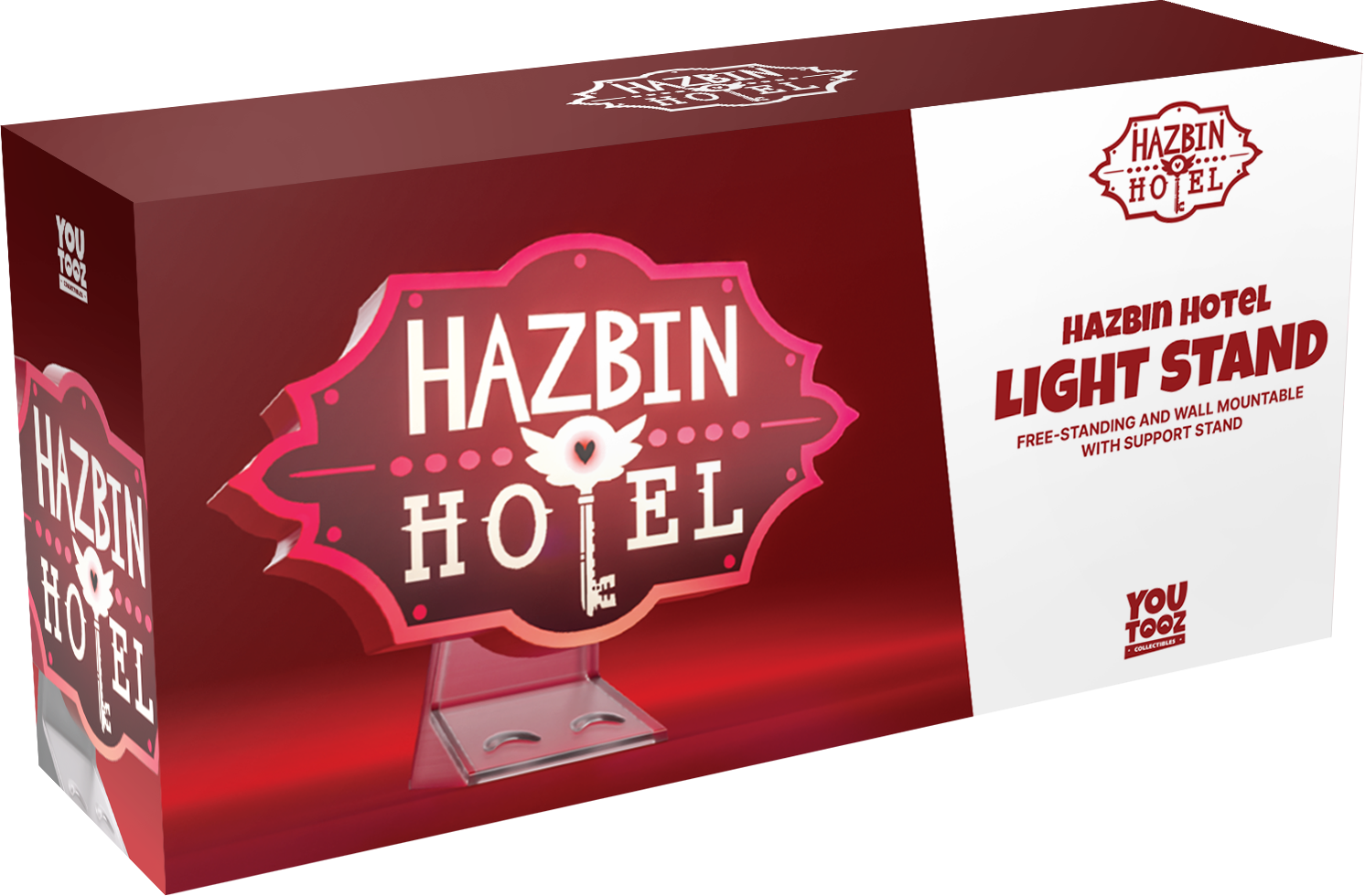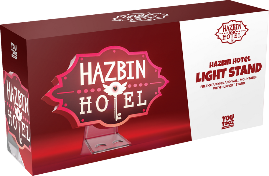 Where’s your favorite place to stay? Ours has to be the Hazbin Hotel! Wait, you too?! Well, guess what, we’re bringing you a brand new, very special, light that truly shows off our love of the place! The perfect addition to any collection as a stunning backdrop to your figures, this light stands at 5 inches tall atop an angled base and sees the Hazbin Hotel’s iconic sign on an elegant red cutout. But that’s not all, this light can be removed from its stand and hung directly on the wall of your bedroom, bar, hotel room or lobby as the ideal centrepiece and constant reminder of who's been saved! Powered by 2 AA batteries, or by plugging in the included USB-C connecting cord to a power source.