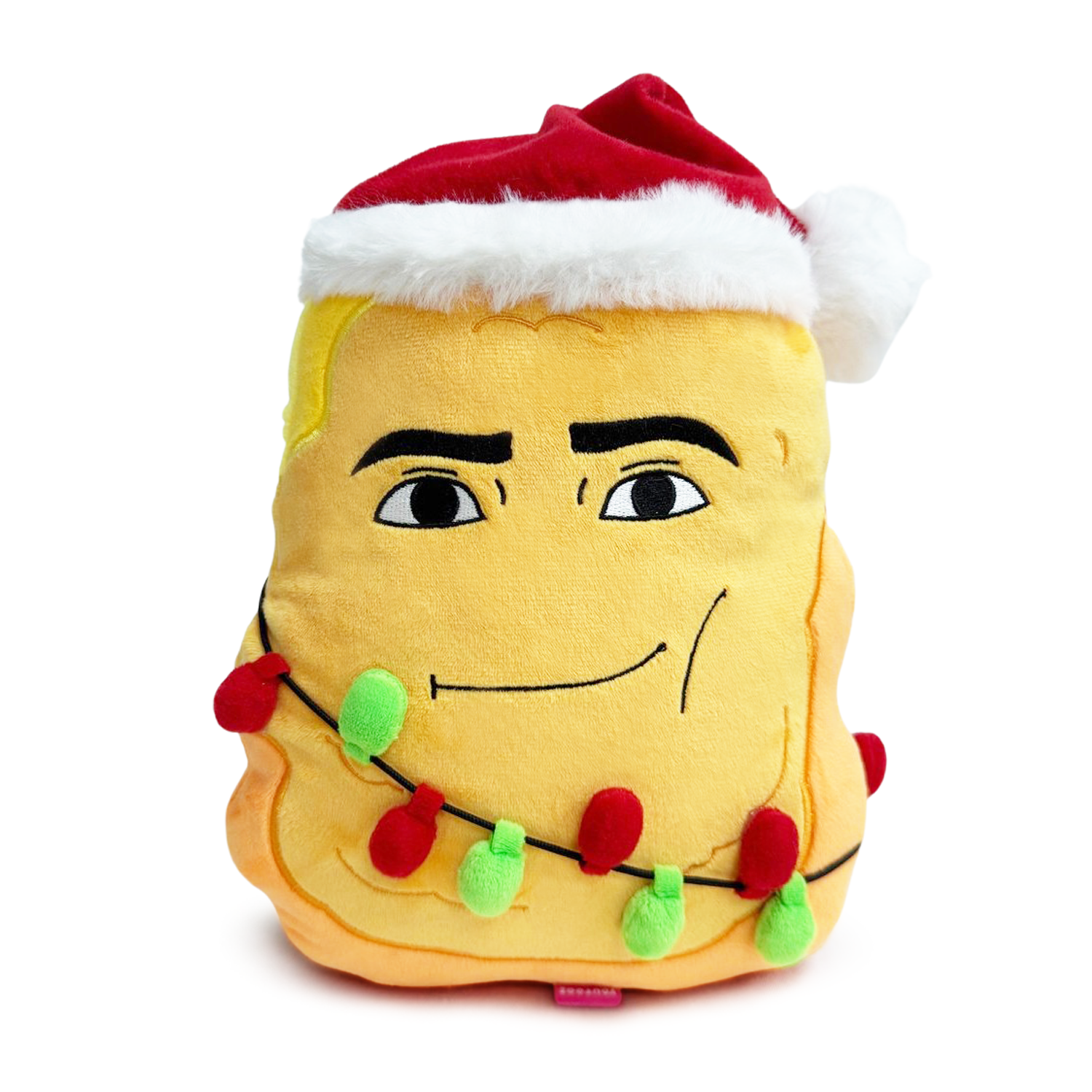 Whoever said nuggets aren’t a Christmas food?! Hot, steamy and ready to eat, this iconic MaxDesignPro character has returned to Youtooz for the holiday season! Sitting fresh from the oven at 9 inches tall, this golden brown nugget has been stamped with the steamiest, most smouldering, smug face, which is complete with a pair of lush, thick eyebrows over mysterious and sensual eyes as a red and white Santa hat rests atop their head, and a string of green and red lights wrap around their perfectly cooked body. This plush is packed to the seams with 100% PP cotton and is made of normal and long pile minky material, perfect for cuddling or snacking on holiday treats with!