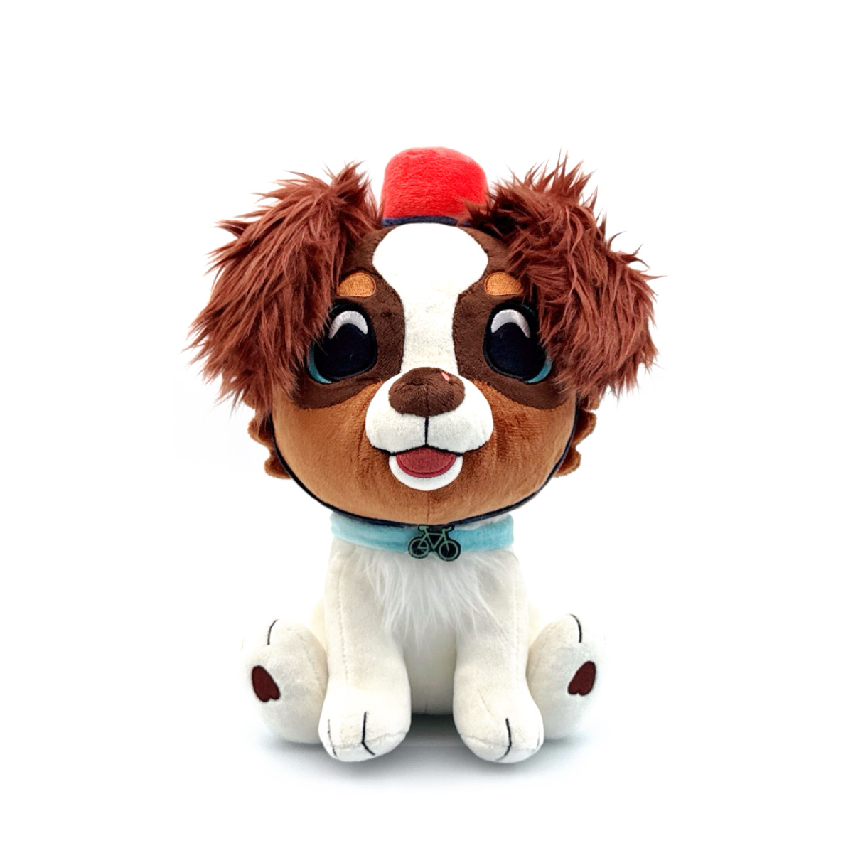 Awoooooo!!! The sirens are blaring and Kaido's joining in to harmonize with his plush debut! Sitting on his rump at 9 inches tall with hind legs kicked forward to show off heart-shaped paw pads, the brown patch of fur on his back leads up to his multi-toned furred head as he's accessorized with a white collar that has a bicycle pendant and a red siren hat on his head! This plush is packed to the seams with 100% PP cotton and is made of normal and long pile minky materials with accents of felt, perfect for cuddling or biking around town with!