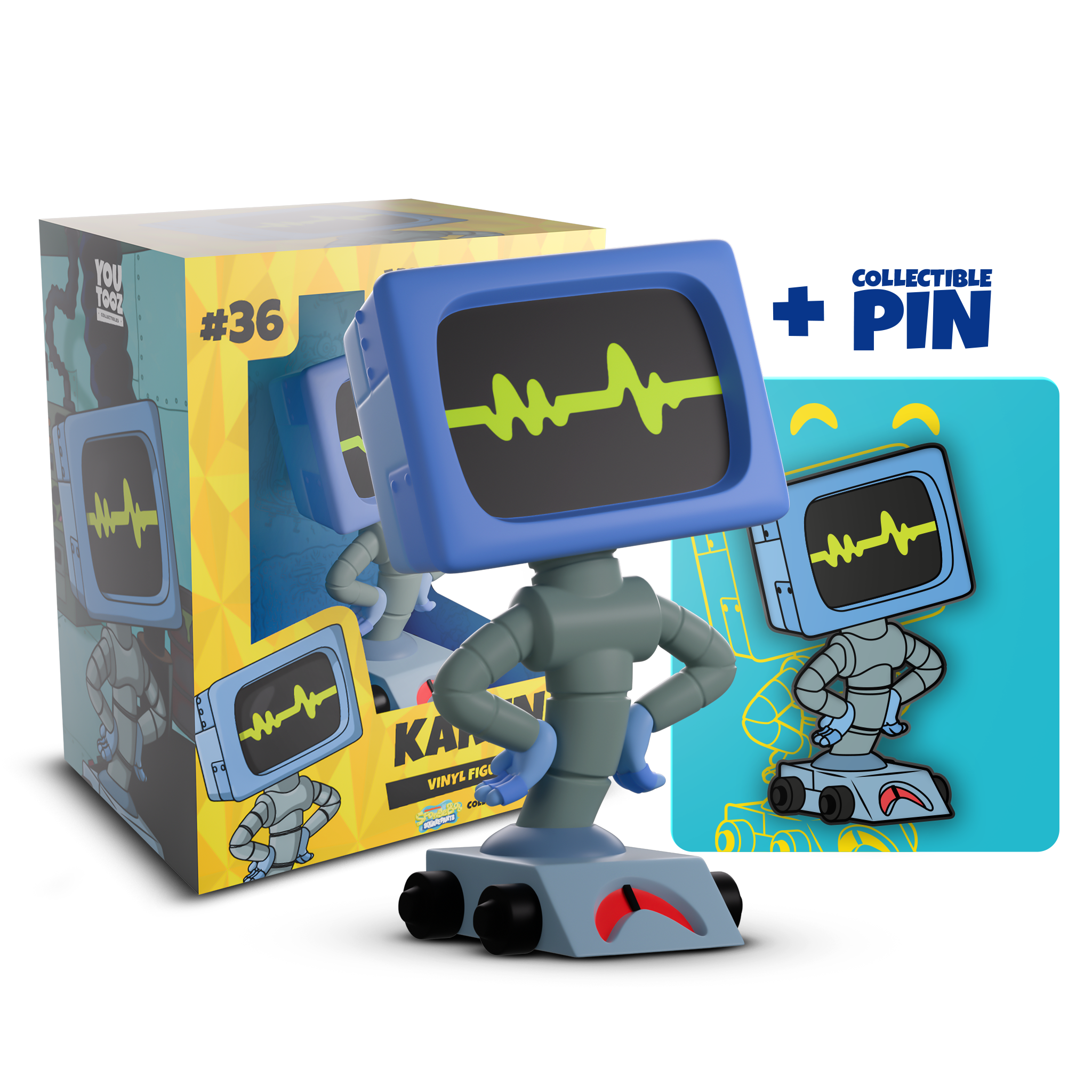 Plankton's better half has had enough of him alone having a Youtooz, so we brought the true owner of the Chumbucket to life with their very own figure! Standing at 4.9 inches tall with her robotic arms perched against her hips (if she had any), her sassy head tilts to the side as a TV screen face has a green heartbeat line that somehow shows her disappointment in Plankton's most recently failed plan. The exterior of their packaging been illustrated with Karen standing in the laboratory of the Chum Bucket with plankton as machines whir all around them, while the interior is an ocean blue gradient collaged with illustrations of SpongeBob. The protective sleeve is then printed with a bright yellow triangular pattern as his figure can be seen through the large clear window at its front. This collectible ships in a matte, embossed, protective outer sleeve and a custom sized plastic protector for maximum protection during shipping.