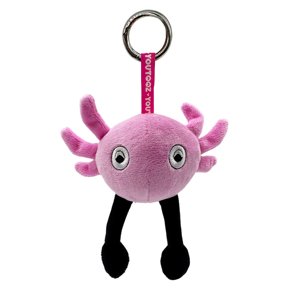 A computer assistant? No way! A real-life assistant? Well, that’s something Kinito can get behind with our brand new keychain! At 5 inches tall with unblinking round eyes at the center of his pale pink body, three dark gills stretch out from either side as long black legs dangle underneath. This keychain is packed to the seams with 100% PP cotton and is made of minky and tricot materials with a keyring attached to the top by a pink tag, absolutely perfect to hang from your backpack, purse, pants or wherever you want to show off you’re ready to learn!