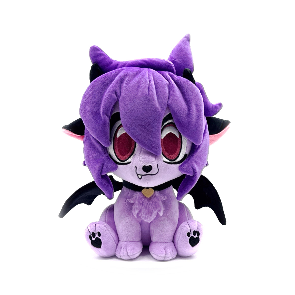 At Youtooz we love playing with summoning circles, and this time we were lucky enough to bring Kira to life as a Youtooz plush! Jumping from the portal we summoned her to sit at 9 inches tall, her back feet kick forward to show off black heart-shaped paw pads that are surrounded by light lavender fur. With a black collar around her neck that has a soft yellow heart pendant at the centre, a reptilian tail with black spikes extends from her back as a pair of wings spread out from her shoulders and purple hair frames a smiling face! This plush is packed to the seams with 100% PP cotton and is made of normal and long pile minky materials with accents of felt, perfect for cuddling or spreading chaos with!
