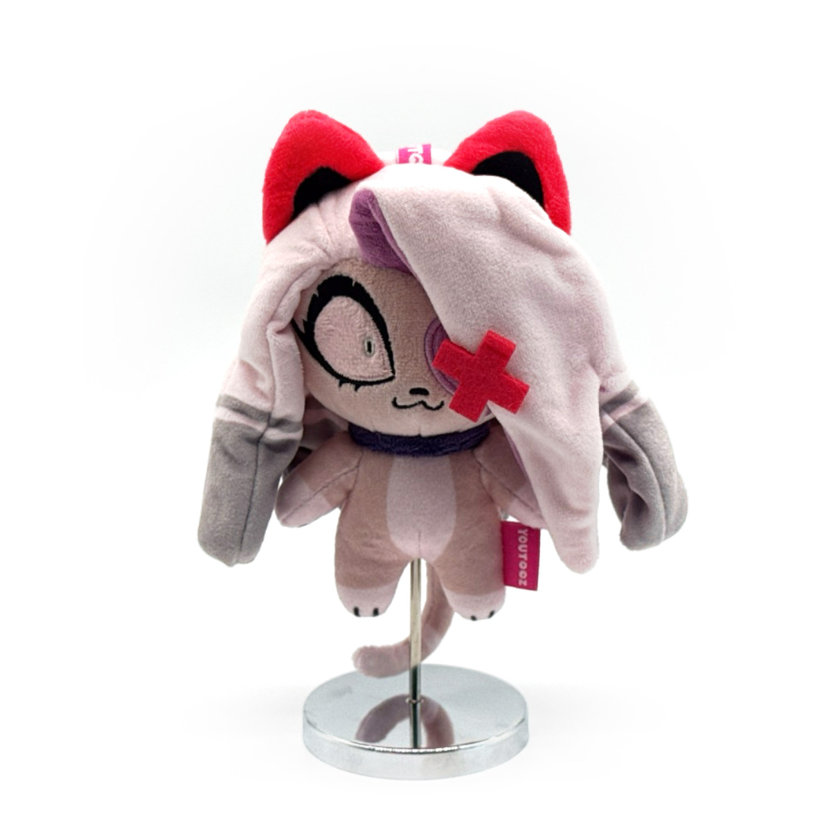 Vaggie has shed her wings and grown a set of claws with her cutest Youtooz yet! Standing at 5 inches tall with a huge yellow and pink eye as a long fringe falls over the right side of her face with a red ‘X’ on the front, a thin smile crosses her adorable muzzle as she wears a black collar around her neck and red bow on the back of her head with a long striped tail hanging from her two-tone brown body. This keychain is packed to the seams with 100% PP cotton and is made of the softest minky material with accents of felt and a keyring attached to the top by a pink tag, absolutely perfect to hang from your backpack, purse, pants or wherever you want to show who’s ready to turn something into a scratching post!