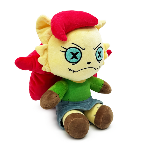 Kitty Dolly has jumped straight from Kitty Channel Afnan's YouTube channel and has become a real-life doll! Sitting at 9 inches tall with her legs kicked forward and dressed in a teal skirt and a green shirt, her stitched doll face forms into a frown with furrowed brows above 'x' eyes and is framed by fuchsia hair that falls down her back. This plush is packed to the seams with 100% PP cotton and is made of the softest minky material, perfect for cuddling or drawing with!