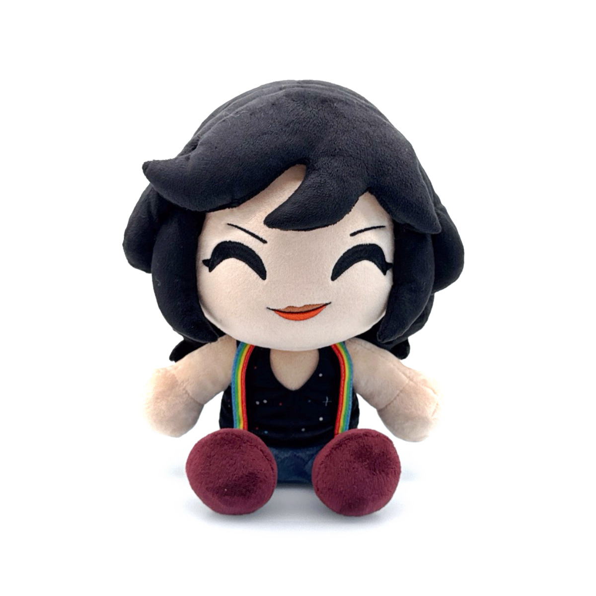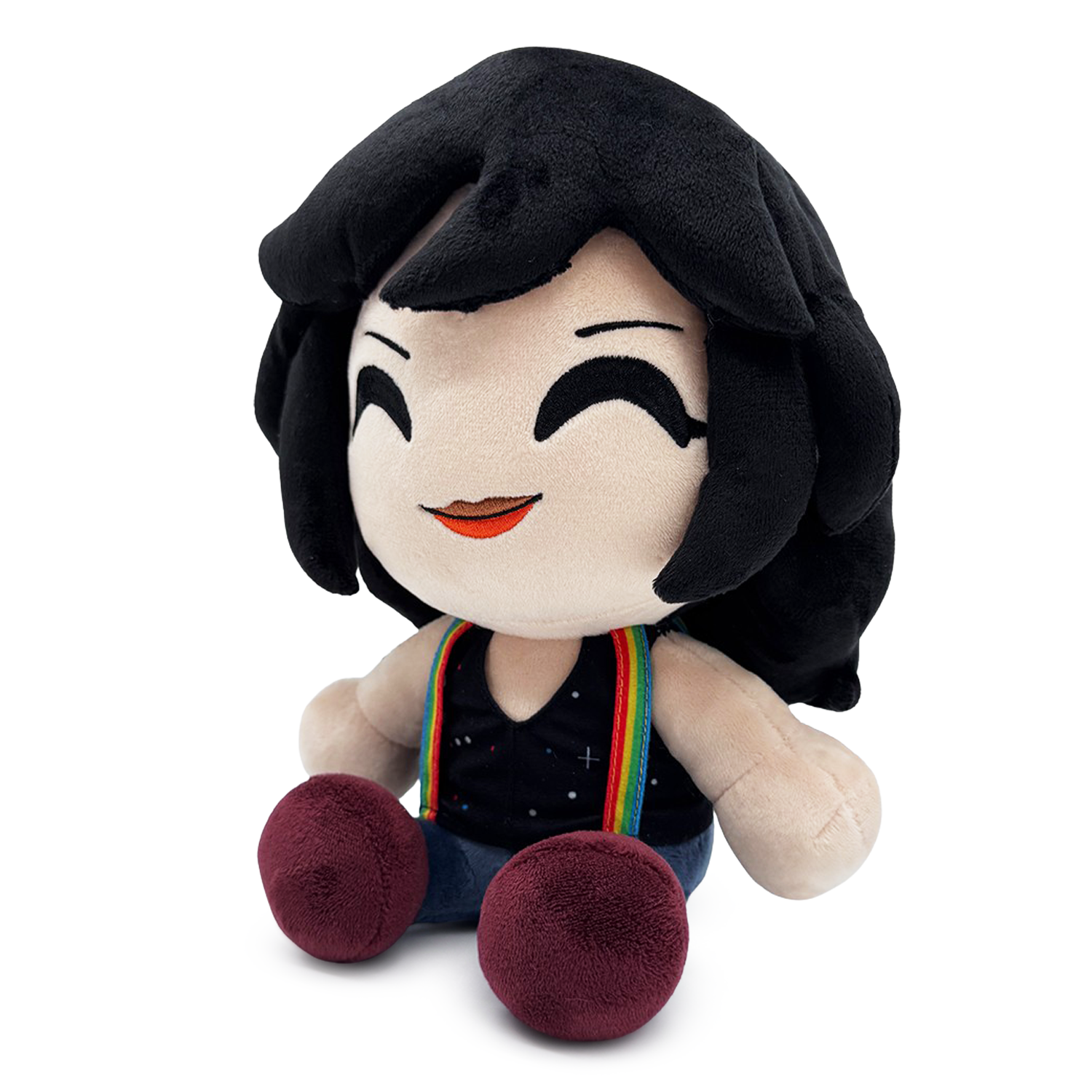 Grab your guitar, it’s time to get rocking! KT Tunstall arrived at Youtooz for her plush debut! Sitting at 9 inches tall with long black hair sweeping across her forehead and cascading down her back, a slanted smirk crosses her deep red lips as she wears rainbow suspenders over a black vest that’s covered in blue, red and white speckles along with blue pants and brown shoes. This plush is packed to the seams with 100% PP cotton and is made of minky and tricot materials, absolutely perfect for cuddling or jamming with!