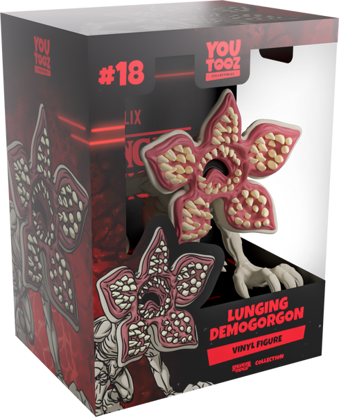 Run…. RUN NOW! IT’S COMING! Crouched forward at 3.9 inches tall as it prepares to lunge forward for a horrifying attack, its fleshy red face opens up into a flowering array filled with sharp teeth as a curved black mouth sits at its center. With jagged bones and pronounced musculature stretching the skin of their emaciated grey body, thin veins curl from the back of their head and over their torso down to huge clawed hands and feet. The exterior of their packaging sees a red vector of them against a black background with faint tendrils working their way across it, while neon red lines blast horizontally through the interior. These then work their way onto the protective sleeve, where their figure can be seen through the large clear window at the packaging’s front. This collectible ships in a matte, embossed, protective outer sleeve and a custom-sized plastic protector for maximum protection during shipping.