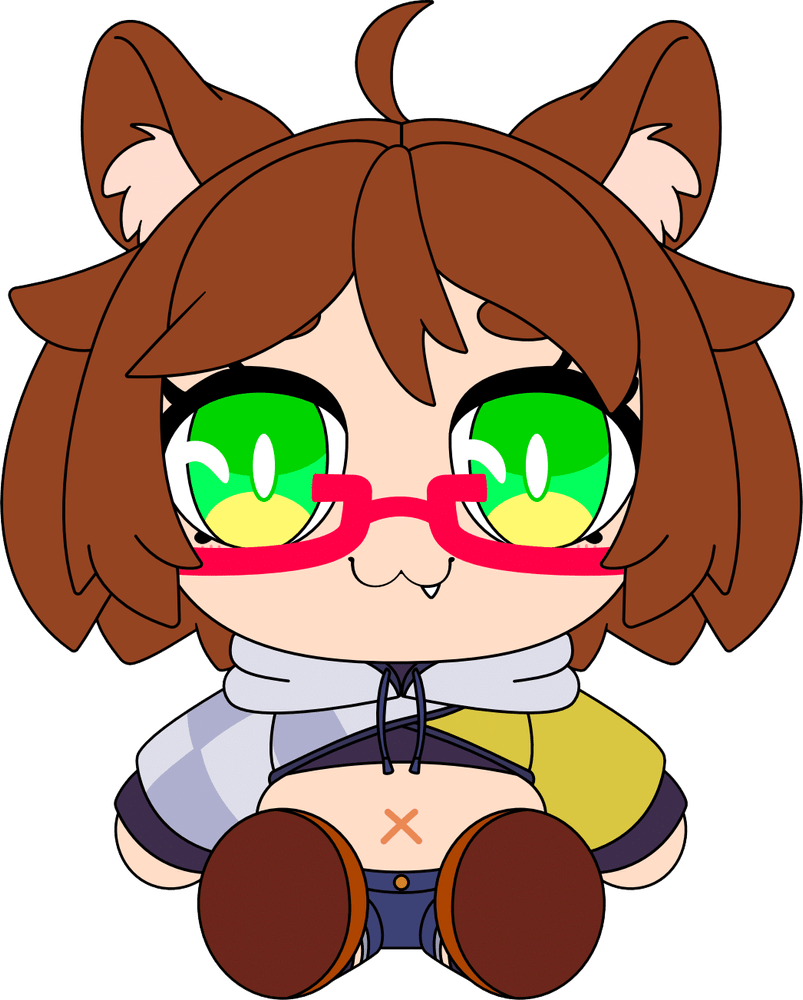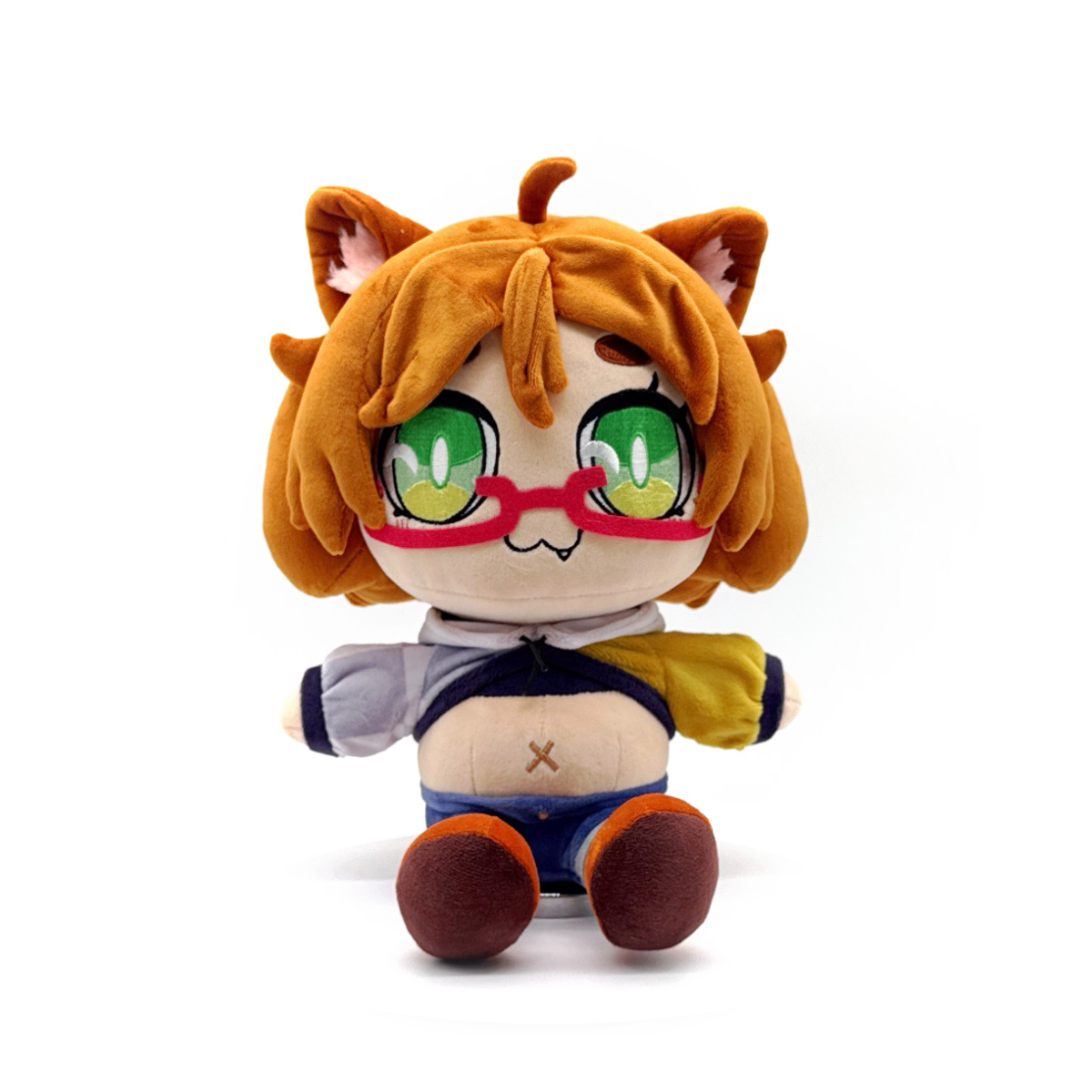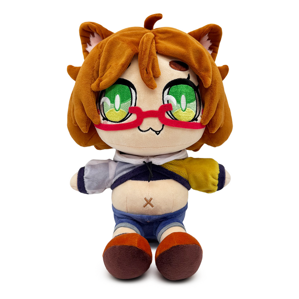 Woof! Should we play fetch! Mint Castella's here for her next adventure as a Youtooz plush! Sitting at 9 inches tall with her legs kicked forward and wearing brown shoes, blue jeans and a cropped multi-coloured hoodie with one checkered sleeve, a happy brown tail extends from her back and matches the dog ears flipping up from atop her head. With thick brown hair framing her face as bright green eyes shine out from behind small red glasses, her mouth is formed into a smile with a singular fang poking out one side. This plush is packed to the seams with 100% PP cotton and is made of the softest minky material with accents of long pile and felt, perfect for cuddling or gaming with!