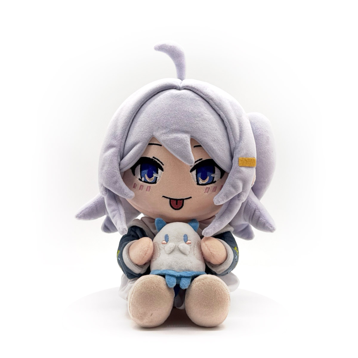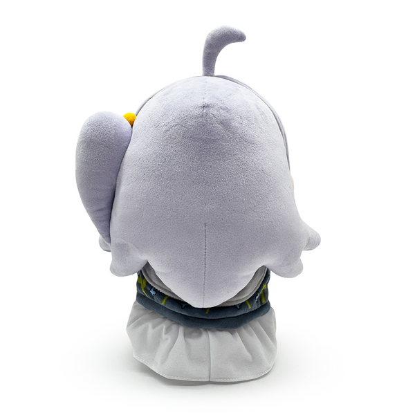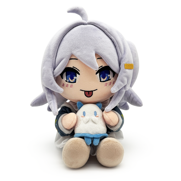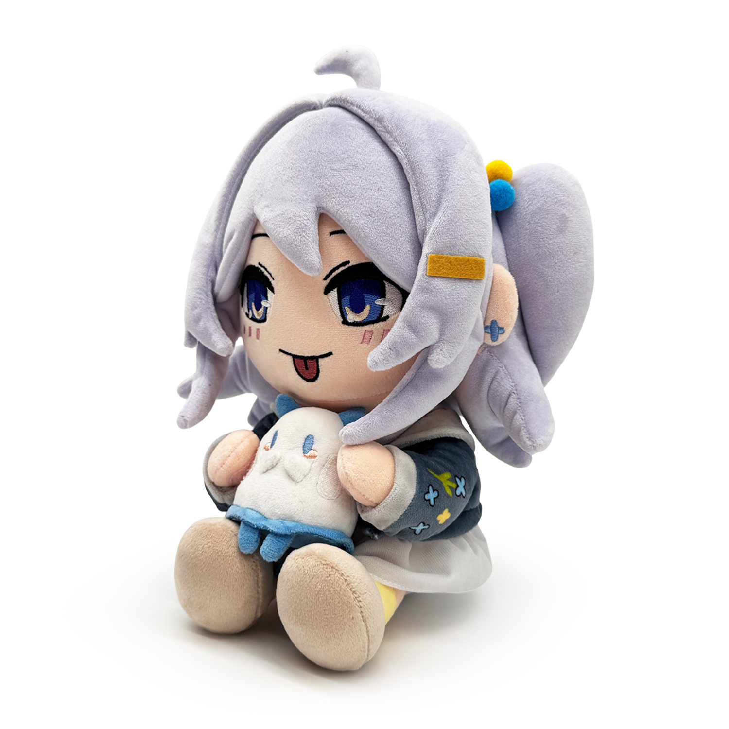 Don't mind Mogu, she's just here to haunt you! Floating through the halls of Youtooz, we convinced our friendly and fierce ghost friend to take coroporeal plush form! Seated at 9 inches tall, this girly ghost is dressed in ballet flats with yellow socks and a white ruffled dress along with a grey cardigan that has a multi-colored floral print. With velcro on her hands so she can hold the adorable little Mo close to her chest, Mogu sticks her tongue out playfully as her ghostly blushing face is framed by light blue hair and bangs. This plush is packed to the seams with 100% PP cotton and is made of both minky and tricot materials with accents of felt, perfect for cuddling or haunting others with!