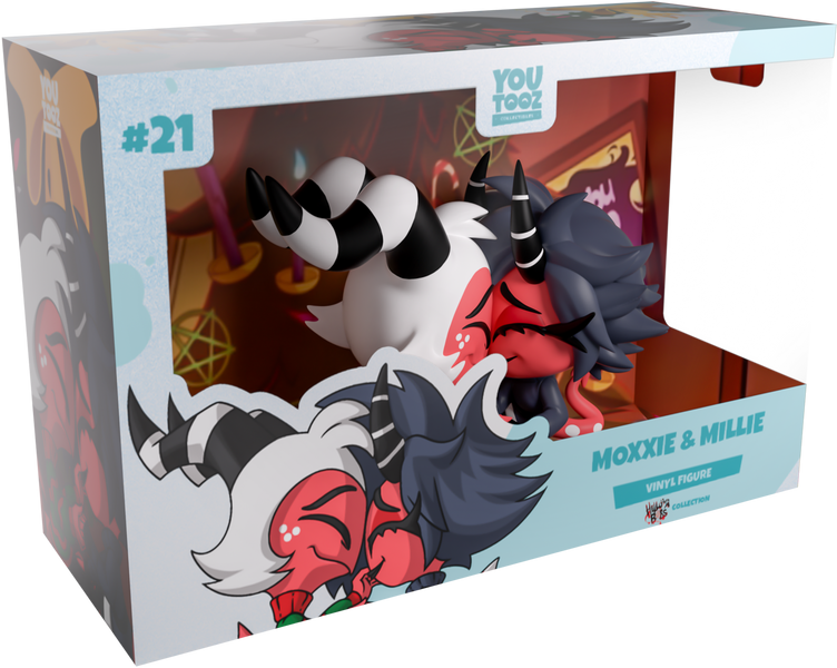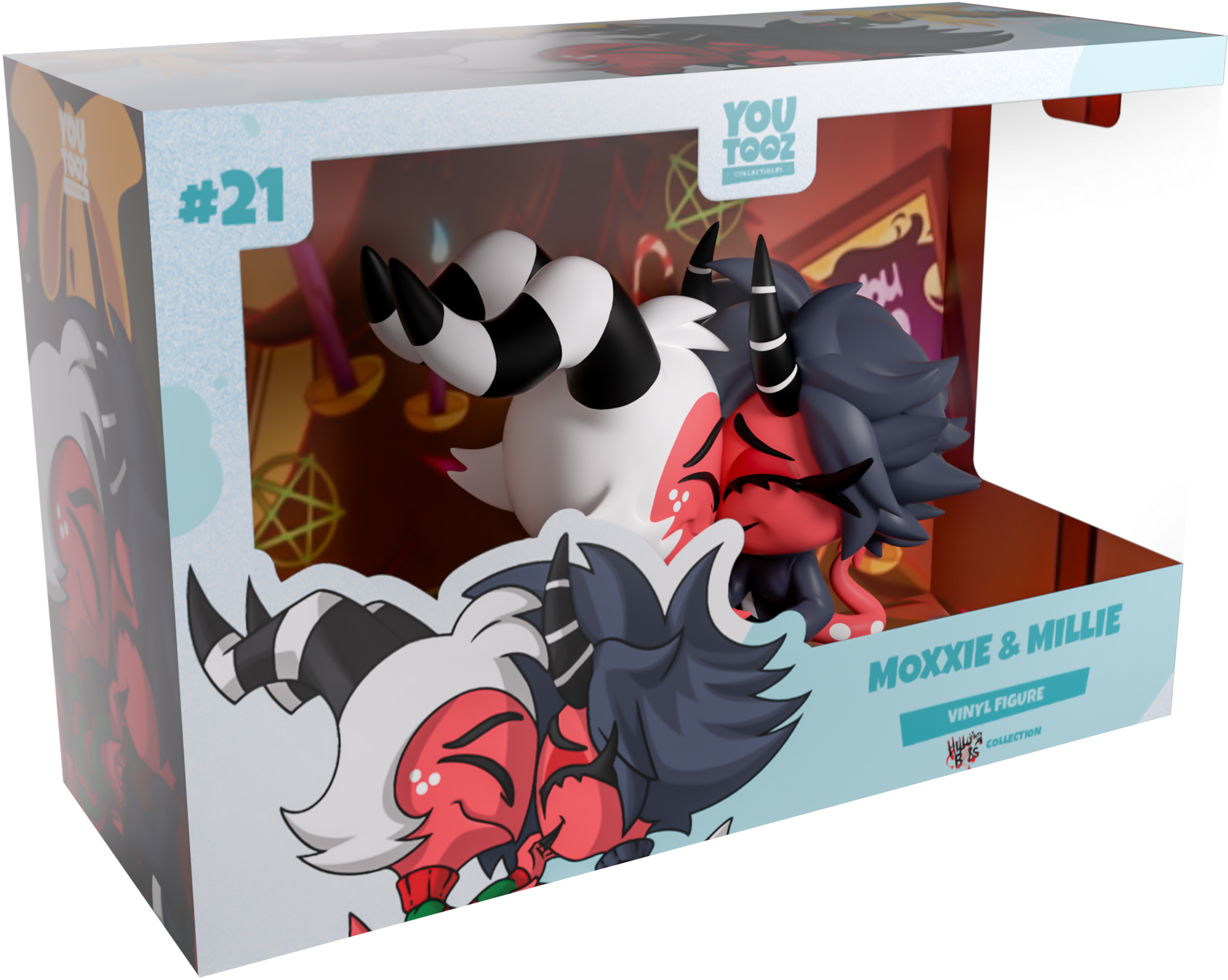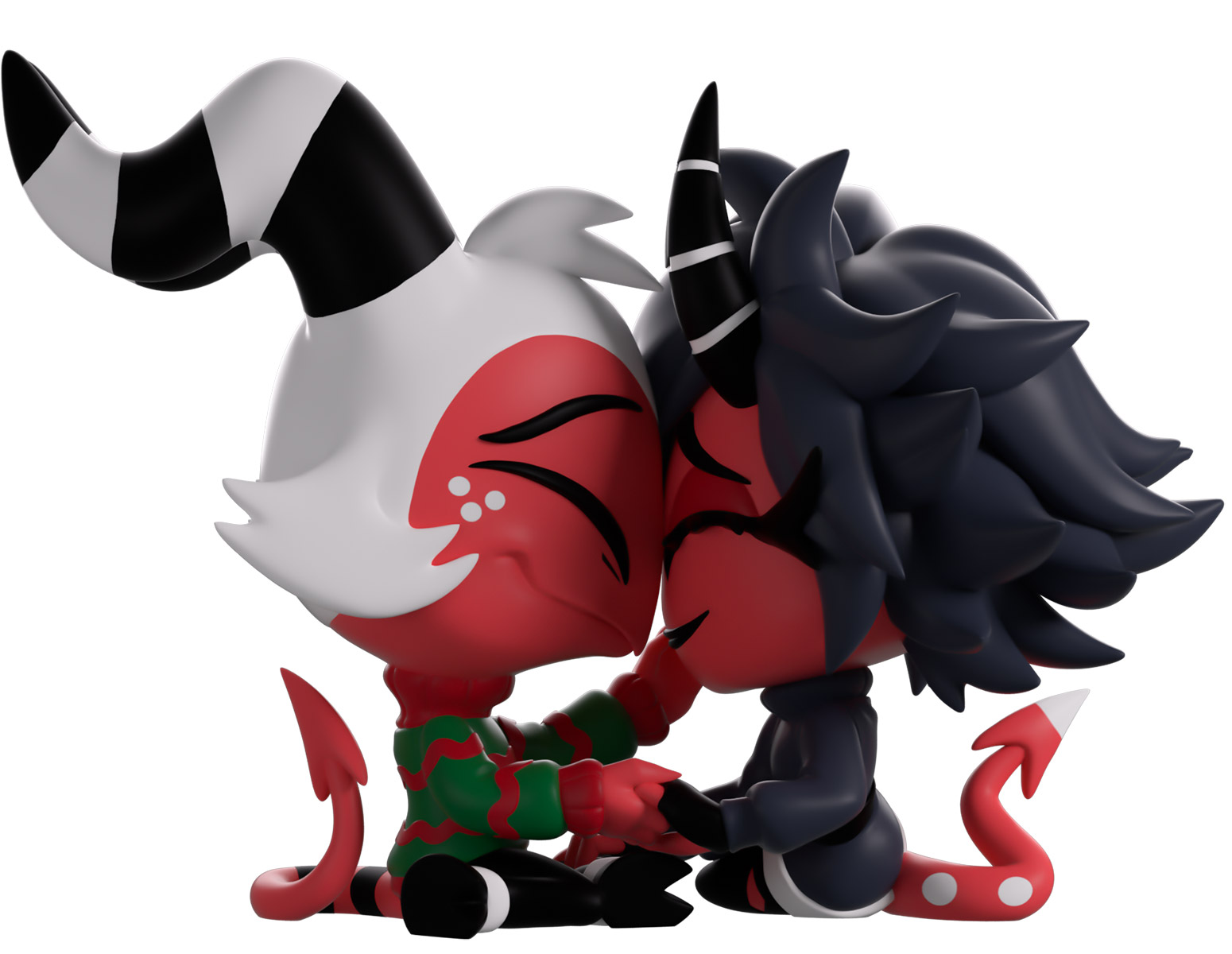 It’s Sinmas time! And Moxxie & Millie are showing us that the best present is love! At 4.1 inches tall, this figure sees Moxxie and Millie sharing a tender moment as the pair hold hands and Moxxie tenderly rests his hand against Millie’s smiling face. Wearing a green and red holiday sweater with ribbed cuffs and black pants, long striped horns curl out from the back of Moxxie’s head, while Millie wears a black knit sweater with long dark hair spreading out from her head as pointed tails curl out from their back. The exterior of their packaging sees colorful silhouettes in front of a green wreath, while the interior shows Millie peeking into a brightly decorated room. The protective sleeve is then patterned with diagonal brown stripes with a green wreath and yellow bows along the top as their figures can be seen through the large, clear display window at its front. This collectible ships in a matte, embossed, protective outer sleeve and a custom-sized plastic protector for maximum protection during shipping