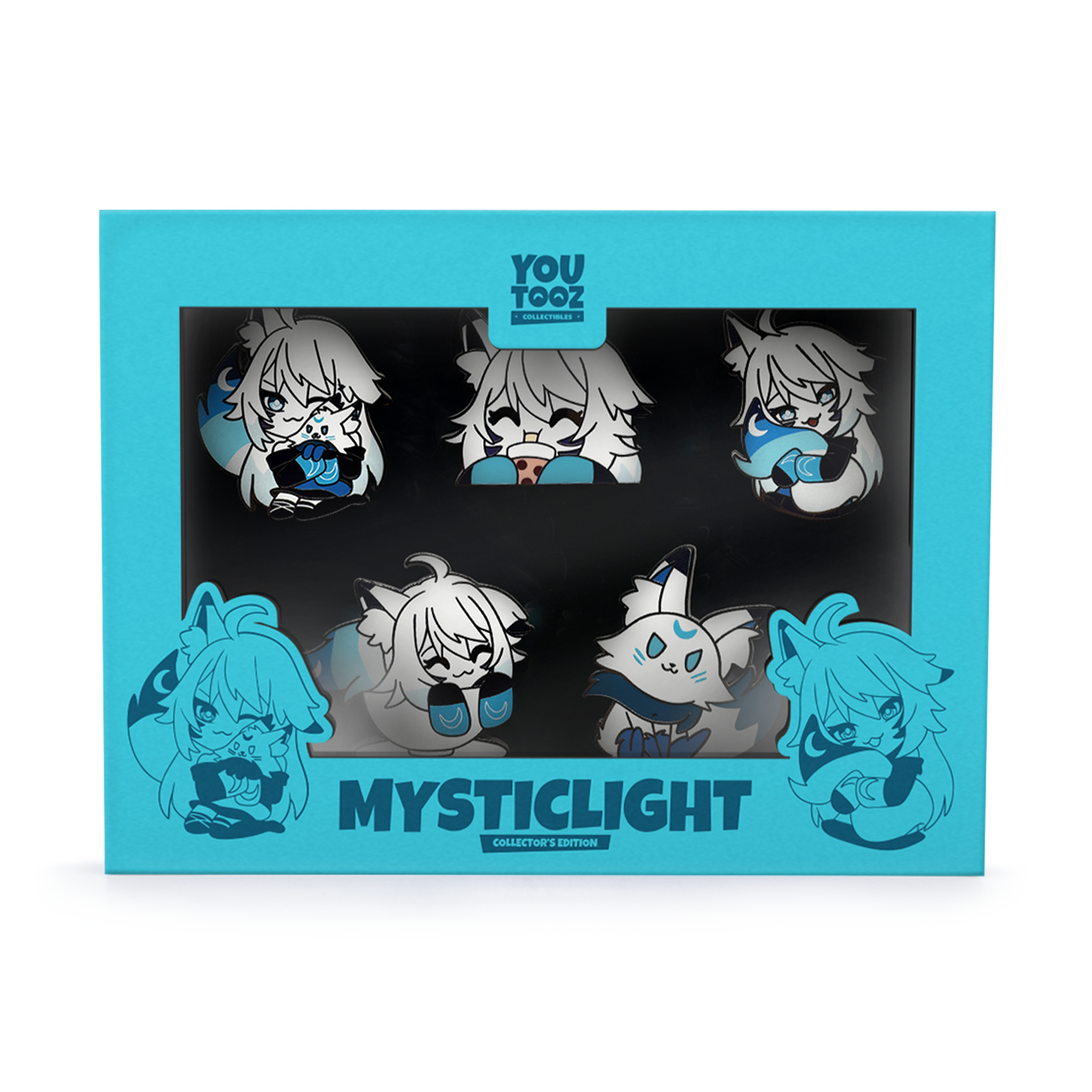 MysticLight has illuminated Youtooz with her brand new pin set! With 5 unique enamel pins that each measure at 2 inches with a shiny, high quality finish, the collection features her enjoying a delicious Boba, hugging an adorable fox, cuddling her fluffy tail, resting in a teacup and a sassy fox with a long tail. Perfect as decorations on a corkboard or showing off on your tote bag, backpack, fanny pack, jacket or wherever your heart desires, these pins are sure to turn heads and catch the eyes of anyone you pass, letting them know who’s ready to hang out and chill!