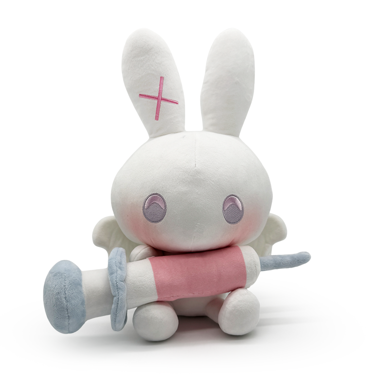 Need some extra love in your life? Well we have The Big Love Technician here and she might have the perfect cure ;) Partnering with Nene Amano, we have brought her adorable Bunny buddy to life as a Youtooz plush! This adorable winged white bunny sits at 9 inches tall with a large syringe held tightly to its belly attached by velcro on their soft white hands, two round purple eyes rest above rosy blushing cheeks as a pair of huge ears poke out from the top of their head and a small tail rests on their back. This plush is packed to the seams with 100% PP cotton and is made of the softest minky material, perfect for cuddling or making music with!