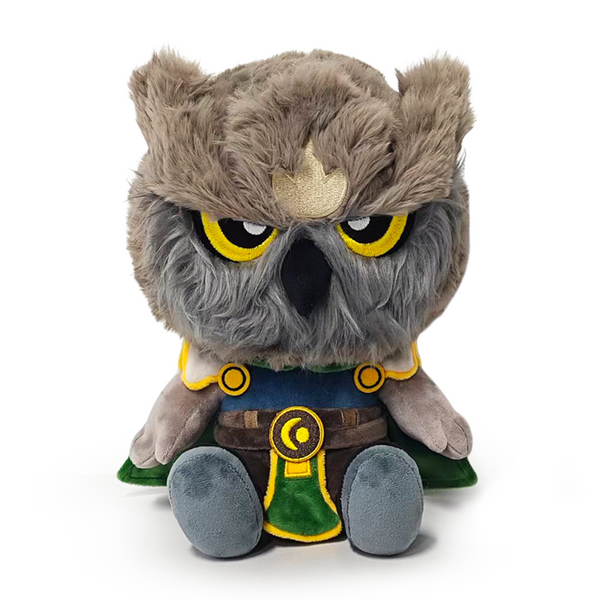 Just like Ezra, we were rescued as kids and raised by the wise Nocturne hero Omari. So we had to bring our feathered father figure to life as a Youtooz plush! Seated at 9 inches tall with his legs kicked forward and dressed in a classic adventurer's garb made in tones of blue and green with accents of yellow along his shoulder pads and skirt, a long green cape falls from his shoulders to frame his grey Nocturne arms as bright eyes stare out from his stern owl face above a dark beak. This plush is packed to the seams with 100% PP cotton and is made of the softest minky material with accents of felt, perfect for cuddling or climbing towers with!
