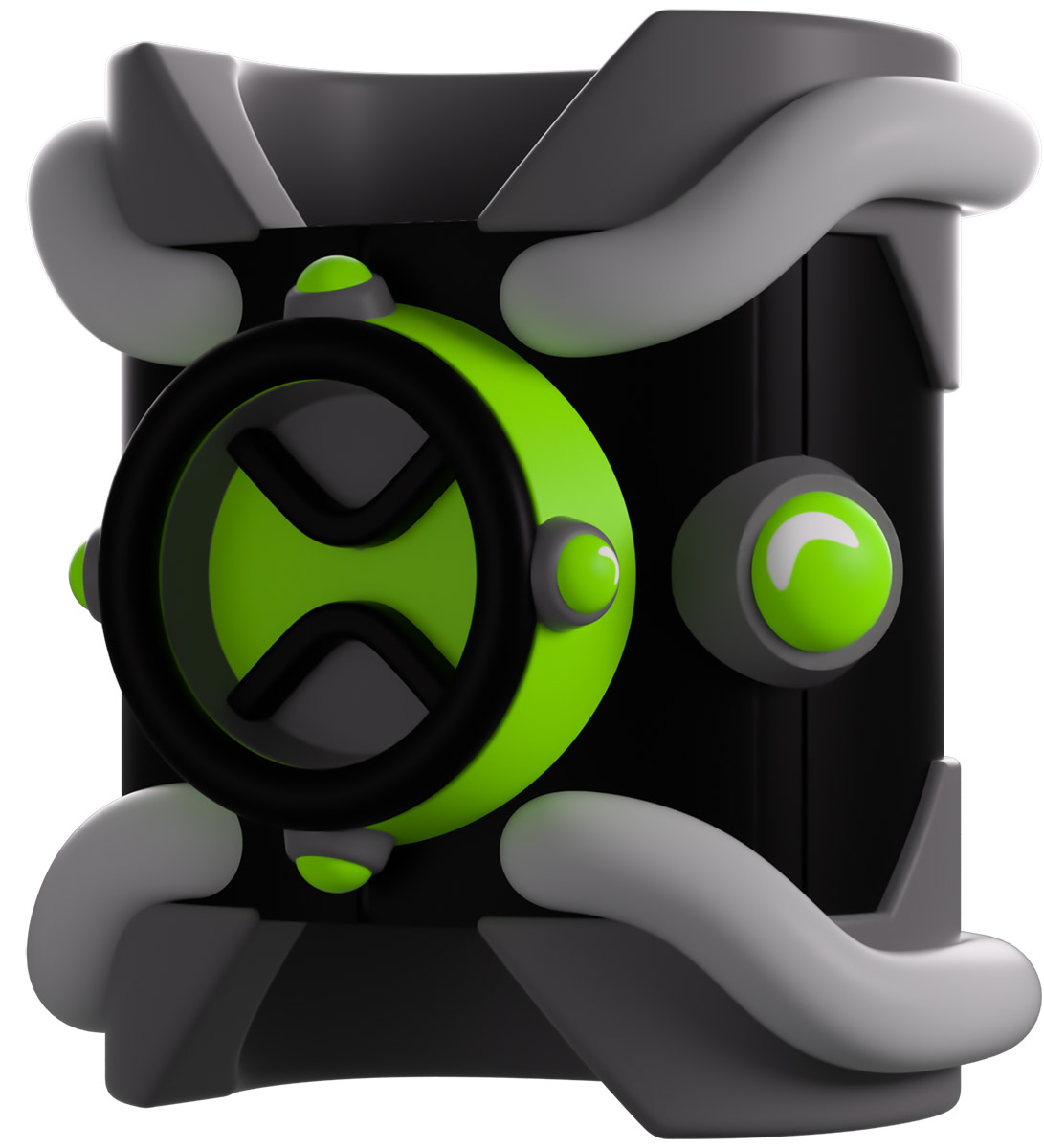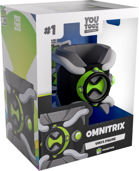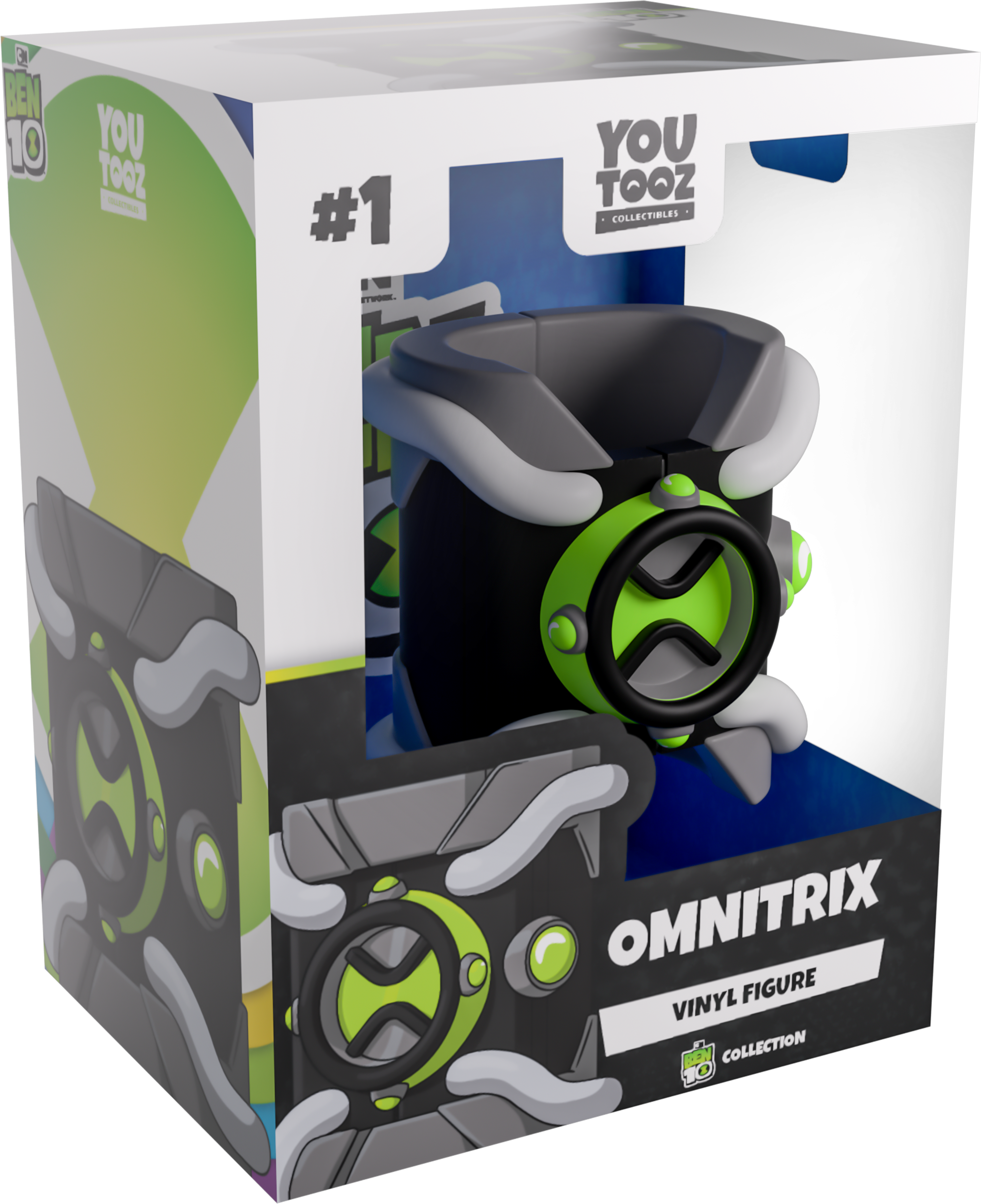 Are you ready to harness the power of intergalactic genetic data and transform with your very own Omnitrix?! At 3.8 inches tall with light grey pipes running around the base of its dark grey band, the black center has a pair of green buttons on their side of the vibrant black and green face that’s ready to get slammed and initiate a transformation! The exterior of its packaging looks down at the Omnitrix on Ben’s wrist. The interior is then covered in a deep mottled blue, while the white protective sleeve has a thick black bar running along the bottom as his figure can be seen through the large, clear window at its front. This collectible ships in a matte, embossed, protective outer sleeve and a custom-sized plastic protector for maximum protection during shipping.