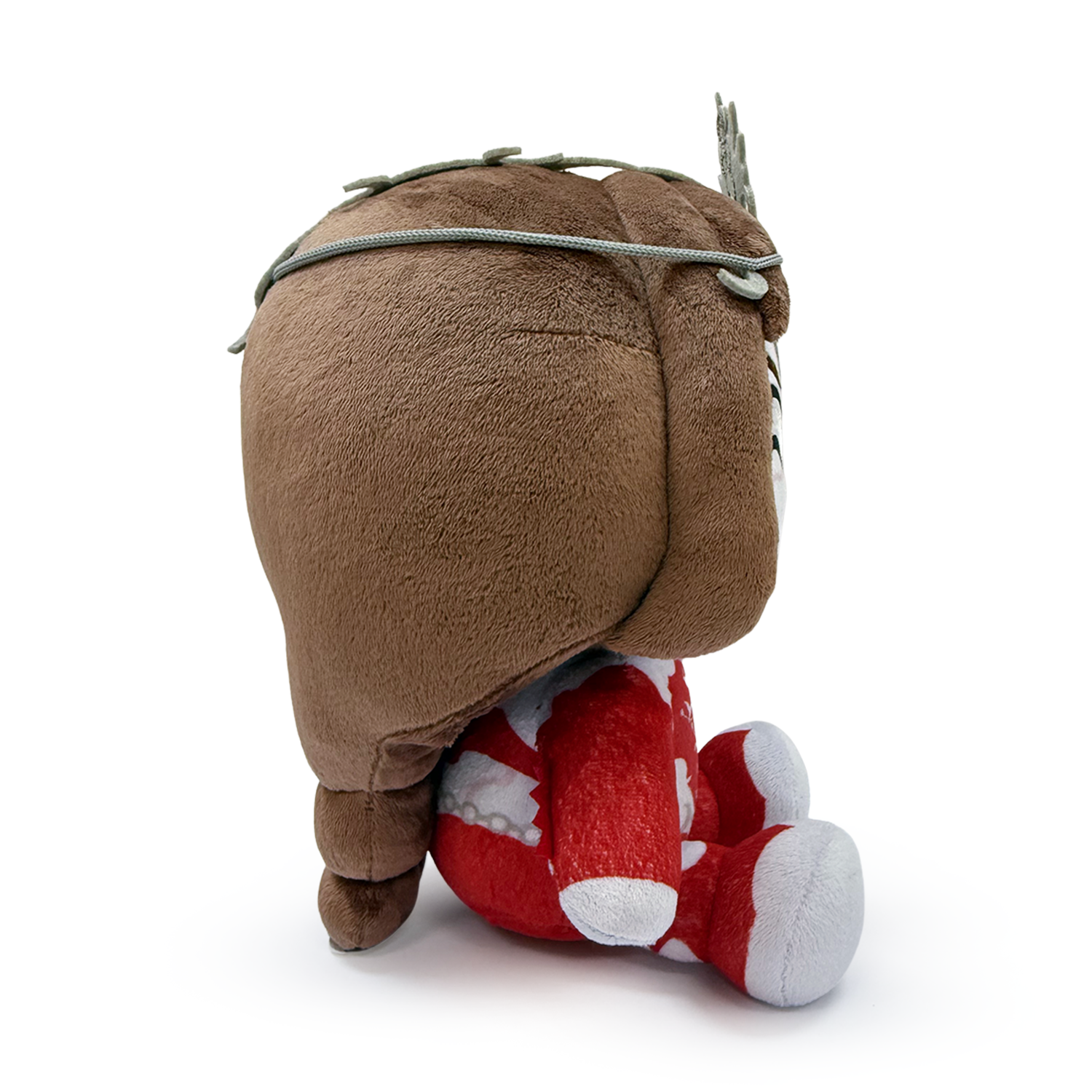 Orin has shape shifted into a new form, a Youtooz plush! Sitting at 9 inches tall with white eyes peering out above an absolutely evil, grinning mouth, light pink marks swirl across her pale face as an ornate headdress with a red jewel on the front wraps over the top of her head. Wearing spiked red armor that resembles jagged bones over her chest, arms and legs, an elaborate belt wraps around her waist and matches the hair clip at the end of her long braided brown hair. This plush is packed to the seams with 100% PP cotton and is made of the softest minky material with accents of felt and chain, absolutely perfect for cuddling and ABSOLUTELY not murdering people with…