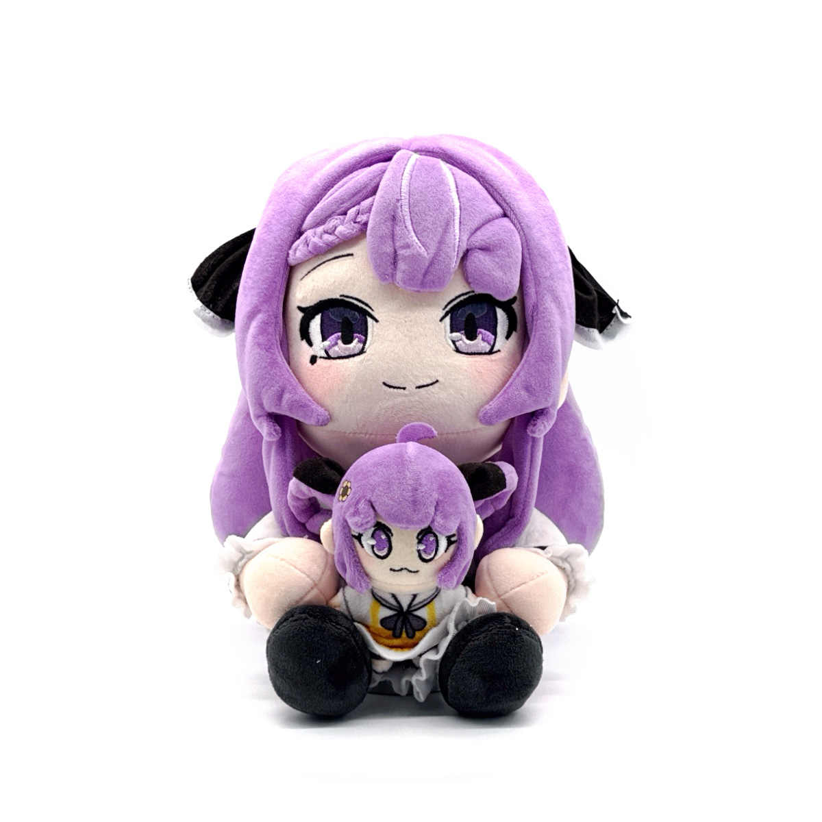 Mother's day may have passed, but this mother is serving no matter the day! Otsuka Ray has left the screen and jumped into the 3D world for her Youtooz plush debut! Sitting at 9 inches tall with her legs kicked forward and holding her daughter Reika in her lap, she's dressed in a black skirt and shoes along with a frilly white shirt. Wearing a bow around her neck that matches the one on her back, lavender hair falls down either side of her blushing face as Reika wears a yellow plaid skirt. This plush is packed to the seams with 100% PP cotton and is made of minky and tricot materials with accents of felt, perfect for cuddling or raising kids with!