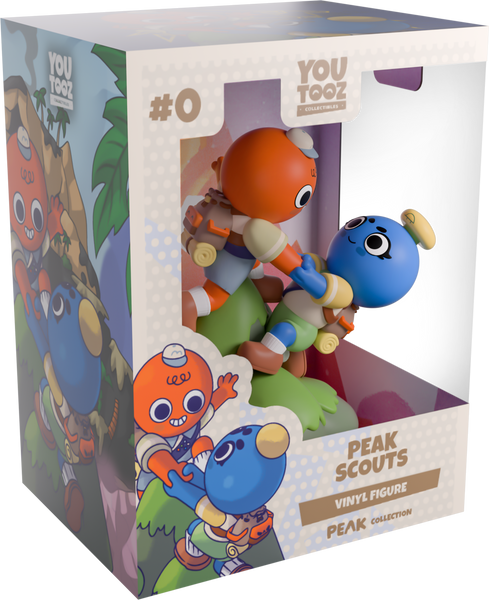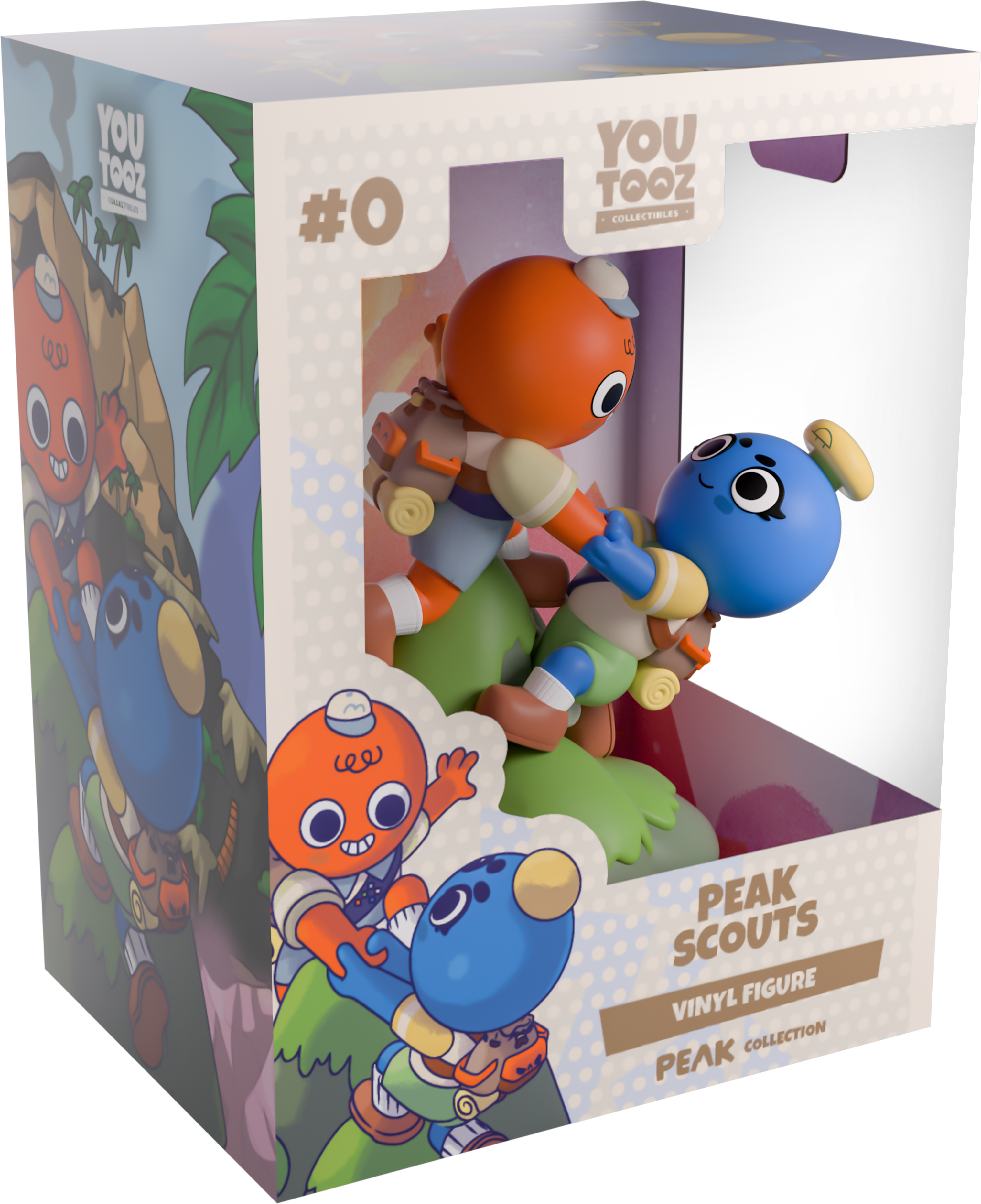 There’s no way you’re getting to the top of the Peak without a little help, and who better to show you how it’s done than these helpful scouts! At 4.5 inches tall, this figure sees a pair of scouts atop a deep green mountain top that’s covered in light grass as the orange scout reaches down to pull up the blue scout gripping to their outstretched hand. Prepared for anything the mountain can throw their way with backpacks full of supplies strapped to their shoulders, the pair each wear t-shirts with striped sleeves and a badge sash around their chests, along with shorts and long white socks that poke out from the tops of brown boots. The exterior of their packaging looks up at a treacherous mountain as the silhouettes of birds and a plane fly through the smokey blue sky. The interior then sees a team of scouts atop a rocky outcrop as a beautiful pink and orange sunset illuminates the peak behind them, while the blue protective sleeve is covered in dark splotches as their figures can be seen through the large, clear window at the packaging’s front. This collectible ships in a matte, embossed, protective outer sleeve and a custom-sized plastic protector for maximum protection during shipping.