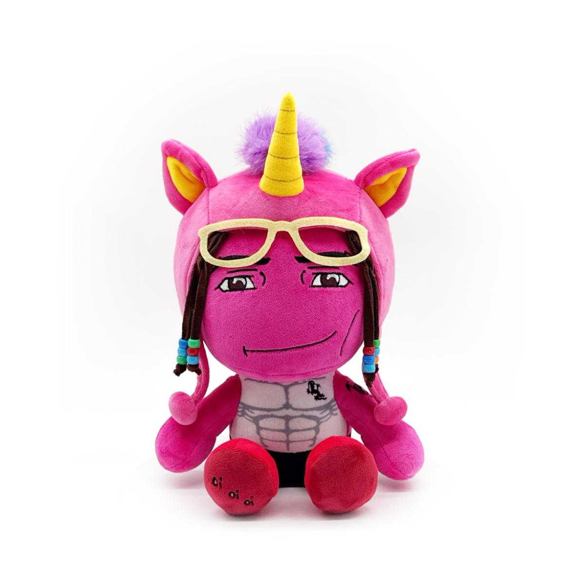 Pink Mink was just spending some time at Youtooz sharing his love for the color pink, so naturally we had to team up for a joint slay! Sitting at 9 inches tall and out-mogging us all with their chiseled cheekbones, they wear pink shoes, black shorts and a white sleeveless shirt that shows off incredibly defined washboard abs. With a pink unicorn hat covering their head that has a rainbow mane cascading down from the yellow horn at the top, white glasses rest above intense eyes as beaded braids frame their face. This plush is packed to the seams with 100% PP cotton and is made of the normal and long pile minky materials with accents of felt and beads, perfect for cuddling or looks-maxxing with!
