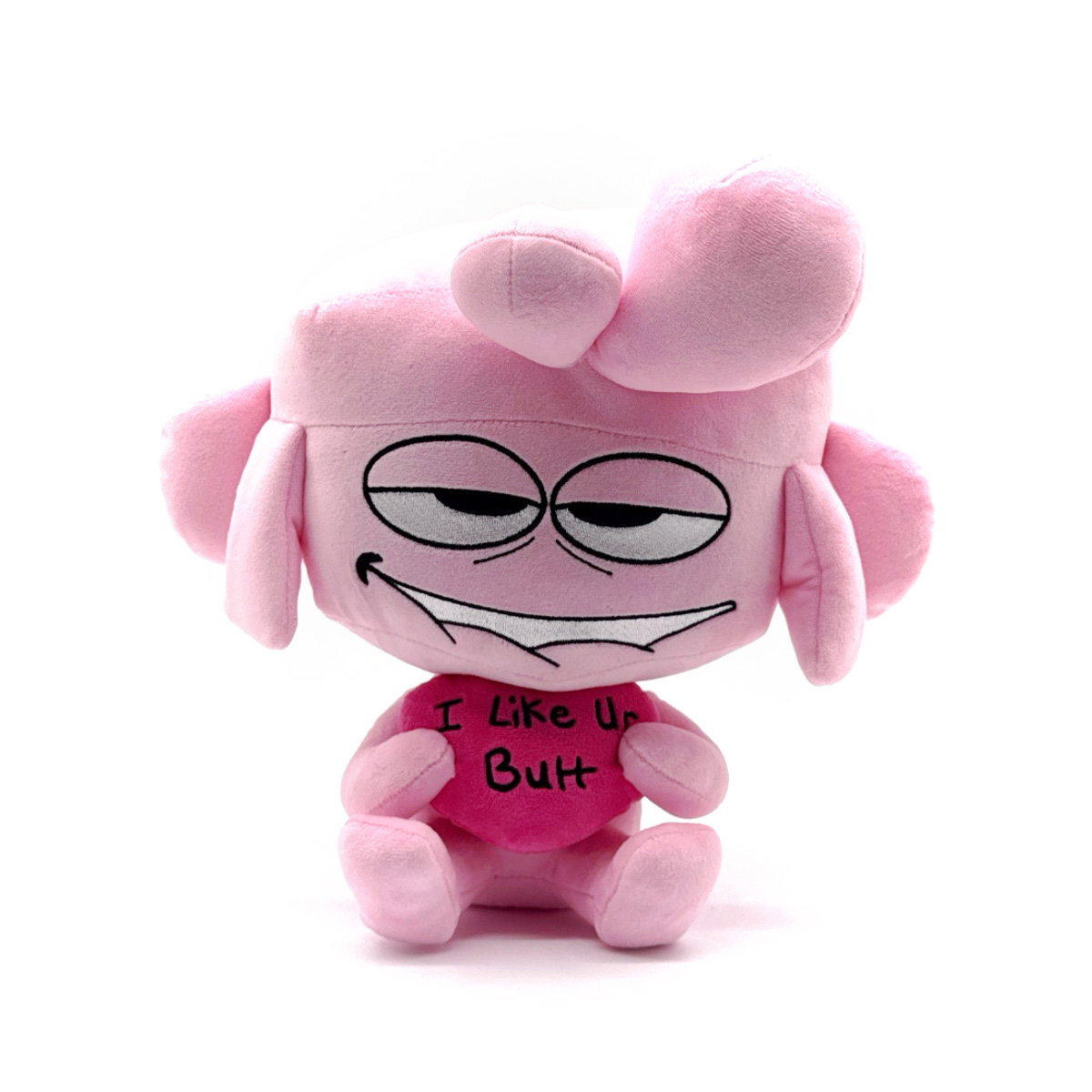 What’s your favorite thing about someone? Their personality? Well, our favorite is their bu… Plush! It’s their Youtooz plush!! Sitting at 9 inches tall and biting her bottom lip… seductively?... half-lidded eyes gaze out from a pink face as thick hair bulges from the front of her head and hangs to either side of round ears. Wrapping her arms around a deep pink heart that says ‘I like ur butt’ as her legs kick forward lazily, she’s propped up but an extra caked toosh. This plush is packed to the seams with 100% PP cotton and is made of the softest minky material, absolutely perfect for cuddling or sharing the love with!