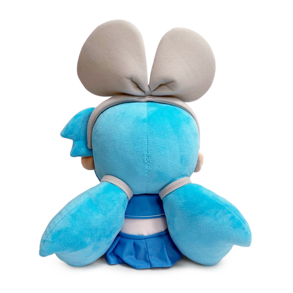 Tune up your strings and grab your pick because the show's about to begin! Quaver has stepped foot on the Youtooz stage to bring you a new song, she's playing a softer tune though with her Youtooz plush debut! Sitting at 9 inches tall with her legs kicked forward and wearing white and blue sneakers, she's dressed in her iconic white and blue schoolgirl outfit with a pleated skirt and mint green scarf tied around to her neck. With light blue hair pulled into two ponytails while sideswept bangs frame her pink eyes and adorable smile, her stage ready look is completed with a large white bow on the top of her head. This plush is packed to the seams with 100% PP cotton and is made of the softest minky and tricot materials, perfect for cuddling or riffing with!