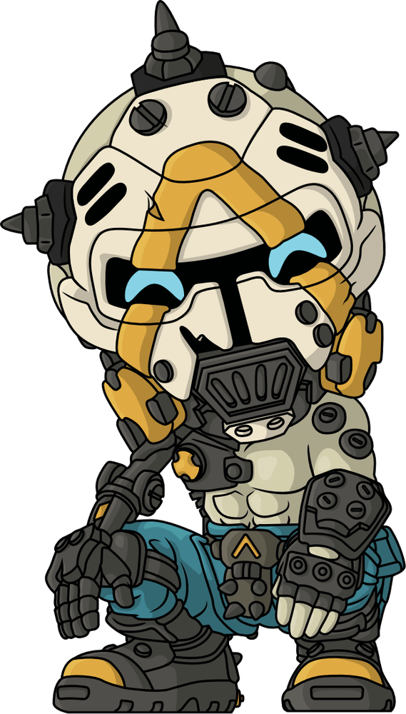 Wait, you thought getting to the Vault would be easy? Well, this Ripper has other ideas! Crouching down at 4.2 inches tall with hands resting on his knees as bright blue eyes look out from the dark slit in his white mask, a thick yellow line runs from the two respirators on either side of his mouth in a triangle over his face as spikes cover bands wrapping around his head. With a grey cybernetic arm reaching out from a plated shoulder that covers the right side of his bare chest, he wears blue pants covered in pouches along with thick yellow-capped boots. The exterior of his beige packaging has deep orange lines running through it diagonally, while the interior is covered in strings of blocky pink code. The protective sleeve then continues the same earthy oranges through its middle as his figure can be seen through the large clear window at the packaging’s front. This collectible ships in a matte, embossed, protective outer sleeve and a custom-sized plastic protector for maximum protection during shipping.
