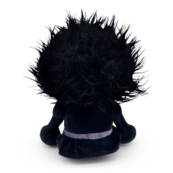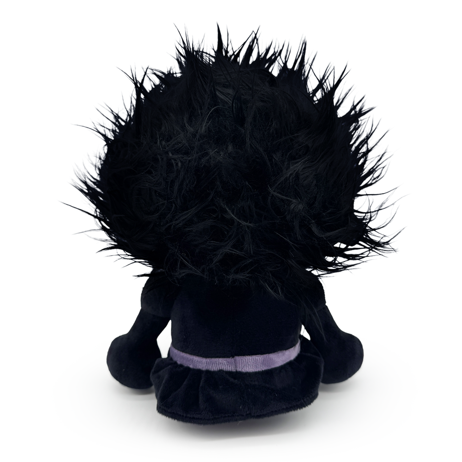 Sure late check-out at the hotel is fine, but Sally will be the one helping you with your bags! Fresh from her shift, Sally has joined us here at Youtooz for her next job! Sitting at 9 inches tall with her legs kicked forward as she wears an all-black dress and grey belt, her face sports a ginormous smile that spreads from cheek to cheek to show off huge bright teeth. With giant round eyes that match her terrifying chompers and wild hair flicking out from her head, glow-in-the-dark material is used to make her ferocious smile pop in the dark! This plush is packed to the seams with 100% PP cotton and is made of normal and long pile minky materials with glow-in-the-dark thread, perfect for cuddling or scaring others with!