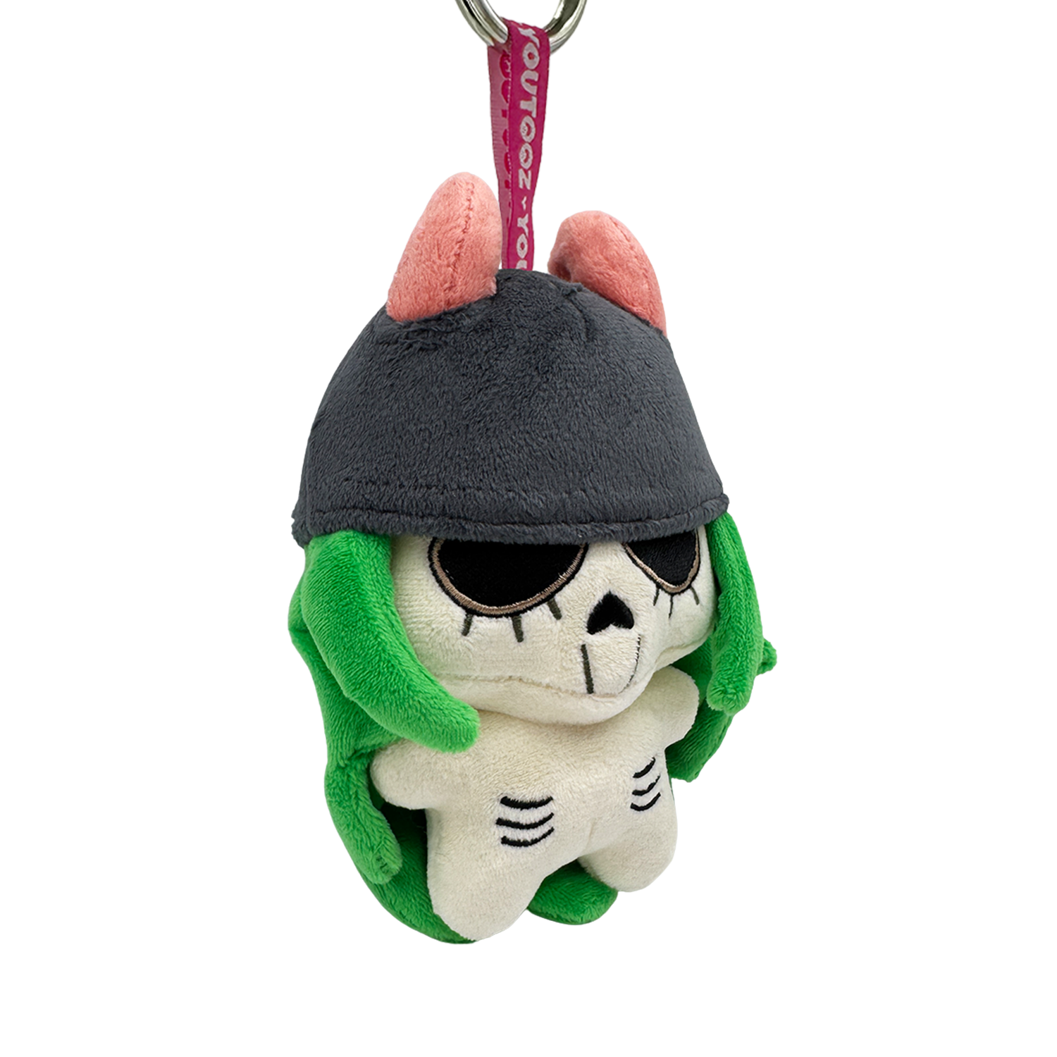 Get ready to rumble! Wrestling star and fierce fighter Shotzi Blackheart has jumped into the Youtooz ring for the perfect addition to your wrestling duffel bag with our brand new keychain. At 5 inches tall with long green hair falling from the dark horned helmet atop their head, hollow eyes peer out from underneath the brim as their skeletal body is a pale white. This keychain is packed to the seams with 100% PP cotton and made of normal and long pile minky materials with a keyring attached to the top by a pink Youtooz tag, absolutely perfect to hang from your backpack, purse, pants, or wherever you want to best show off your love for the fandom!!