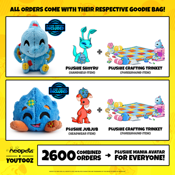 This Shoyru might look soft and cuddly, but that won't stop them from having a fierce Youtooz plush debut - fiercely cute, that is! Sitting at 9 inches tall with soft, plush arms and legs, lovingly sewn patches and stitching, this sweet little Neopet is ready to be adopted into a new neohome. This plush is packed to the seams with 100% PP cotton and is made of the softest minky material, absolutely perfect for cuddling!