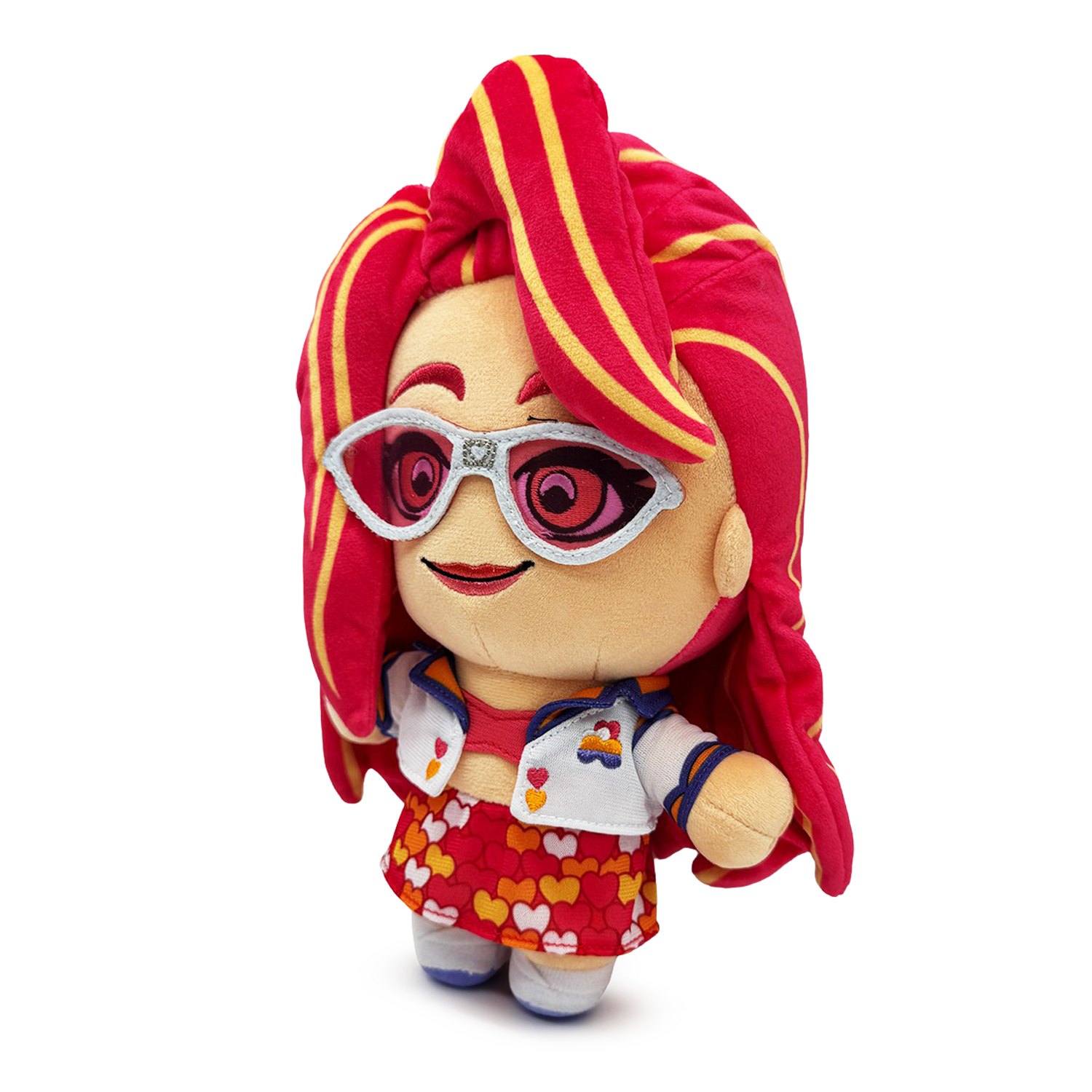 Are you ready for romance? Because Skylar’s arrived at Youtooz and she’s ready for a date! If you can convince her, that is! Standing at 9 inches tall with a pair of pink-lensed white glasses covering her brown eyes, a sweet smile crosses her face as long pink hair with yellow accents falls to the side in a thick fringe and hangs down her back. She wears stylish boots and a cropped white jacket with blue and yellow trim that’s open at the front to reveal a pink bra, as her skirt is patterned with pink, yellow and white love hearts. This plush is packed to the seams with 100% PP cotton and is made of minky and tricot materials with accents of felt and clear pvc, absolutely perfect for cuddling or dating!